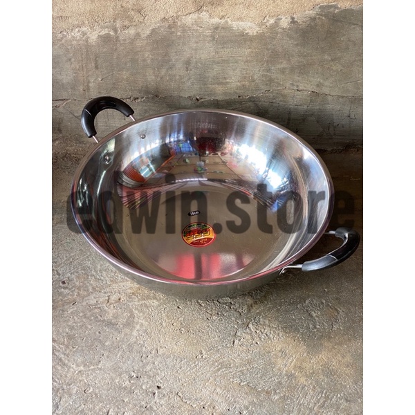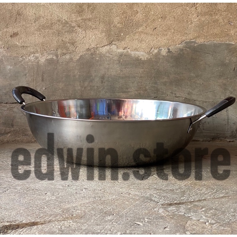 Kitchen Ware - Wajan Kuali Wok Pan Penggorengan Stainless Steel Tebal anti lengket Murah 30cm 32cm 34cm 36cm 38cm 40cm BMW SMJ RUIXING 555 - WAJAN KUALI WOK COOKING PAN GAGANG STAINLESS STEEL TEBAL