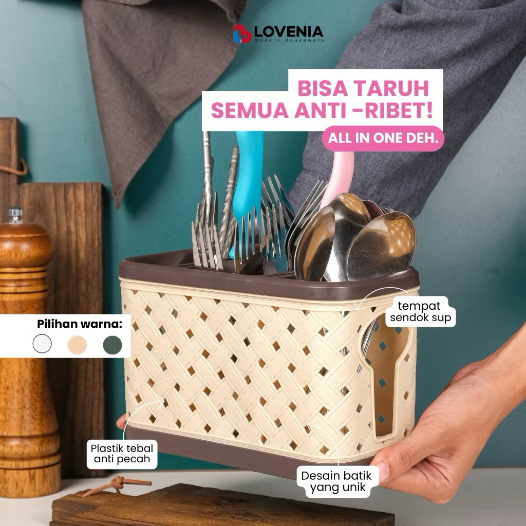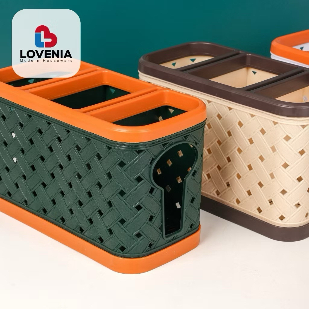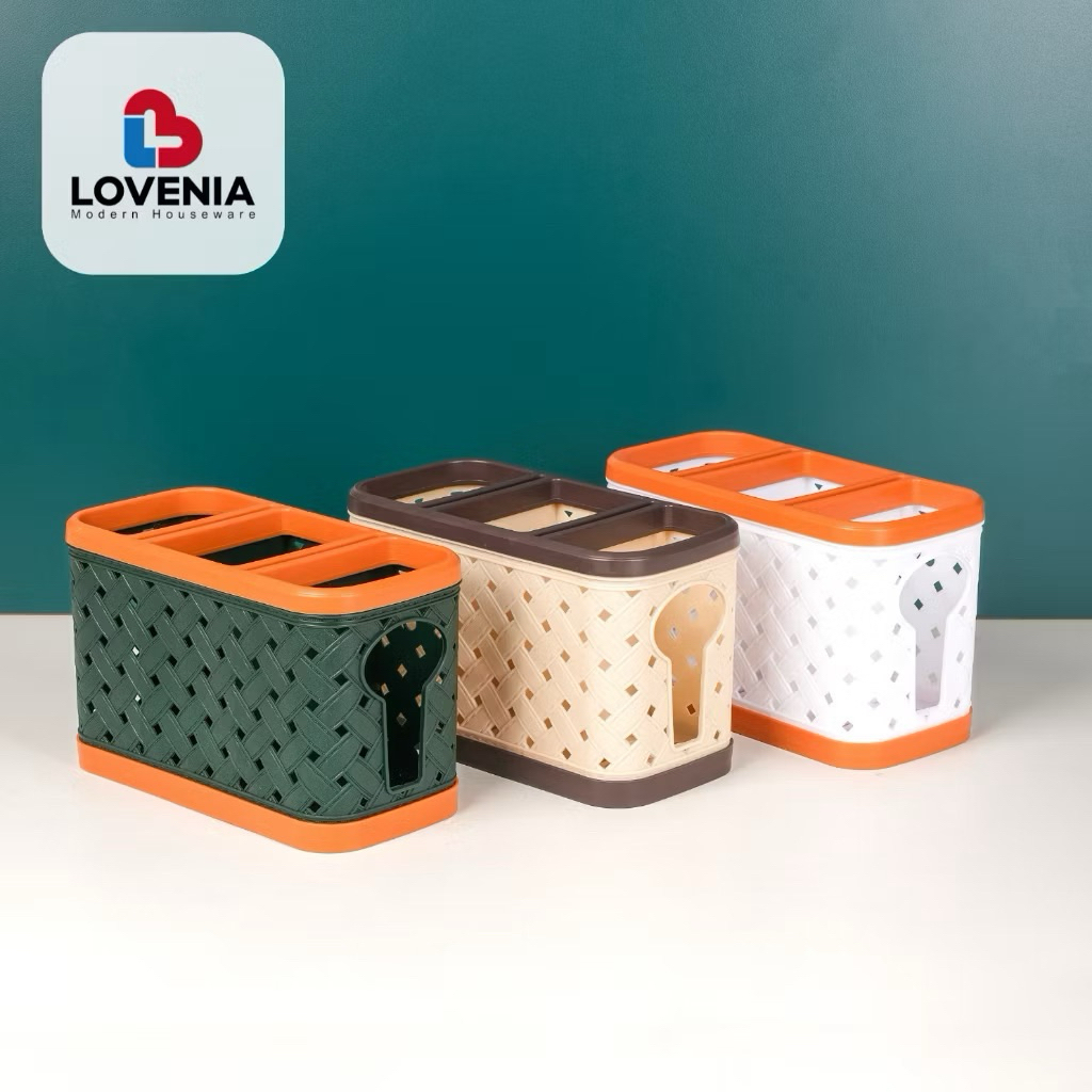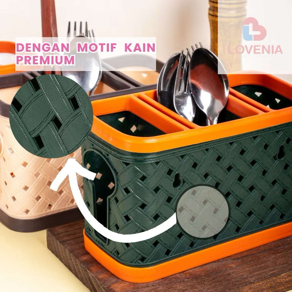 Tempat sendok estetik kekinian Tempat Sendok susun 3 Lovenia ELVI Tempat Sendok Plastik Motif Kain dengan sekat 3 Rak Pisau / Tempat Pisau Knife Holder - Tempat Sendok Elvi Plastik Motif Tikar dengan sekat 3 Premium Serbaguna Lovenia