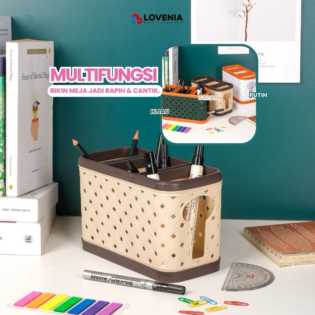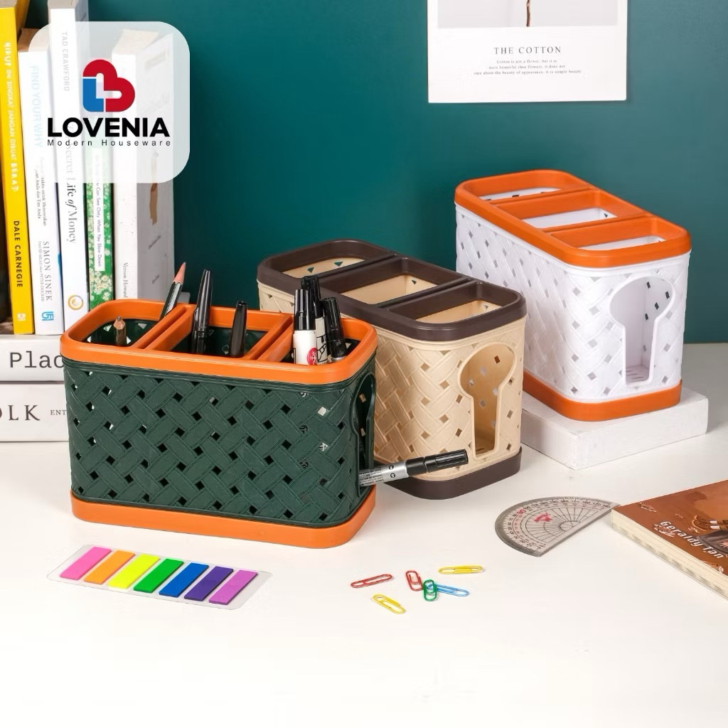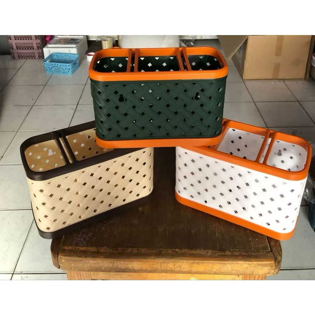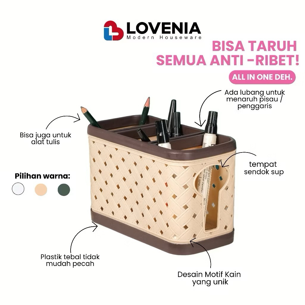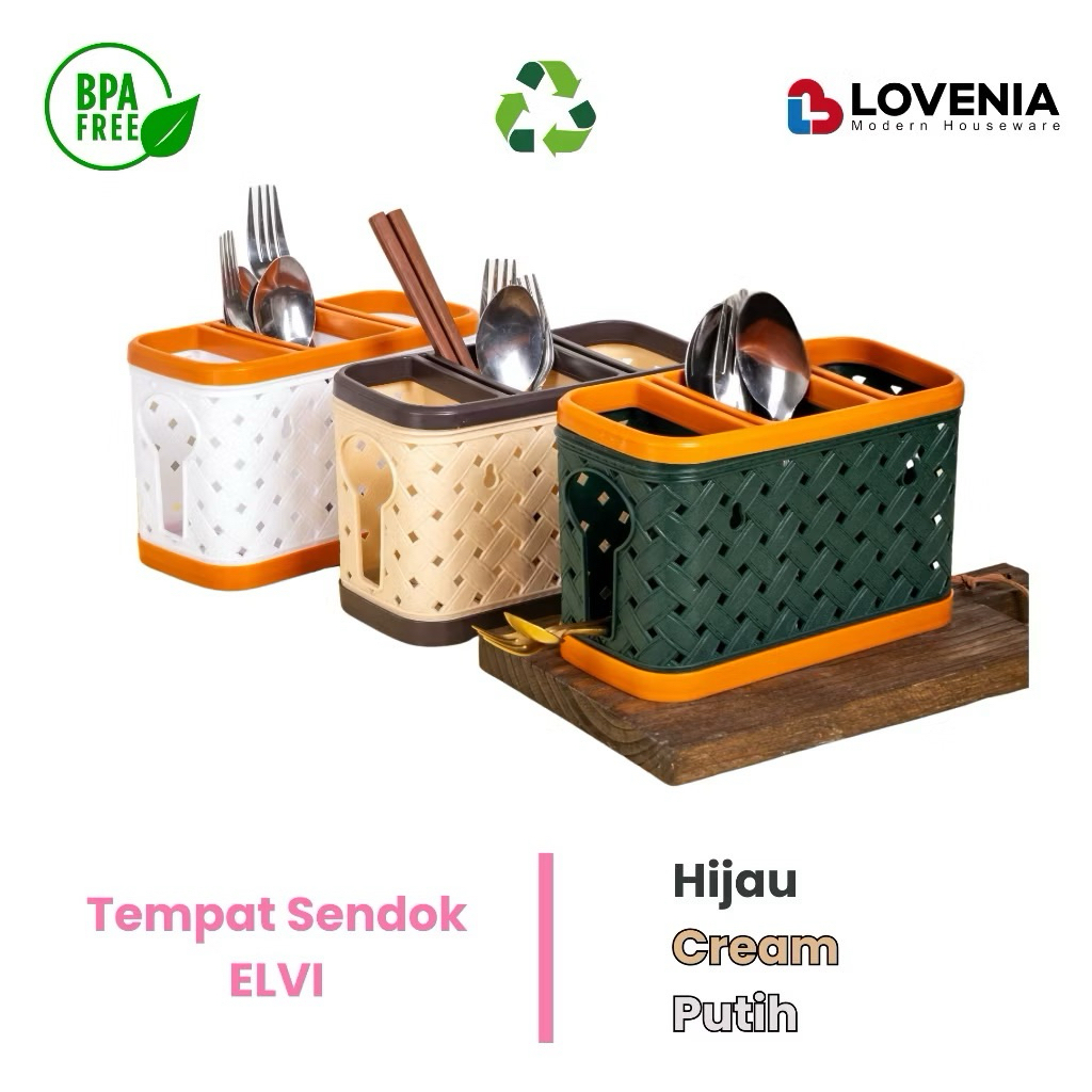 Tempat sendok estetik kekinian Tempat Sendok susun 3 Lovenia ELVI Tempat Sendok Plastik Motif Kain dengan sekat 3 Rak Pisau / Tempat Pisau Knife Holder - Tempat Sendok Elvi Plastik Motif Tikar dengan sekat 3 Premium Serbaguna Lovenia