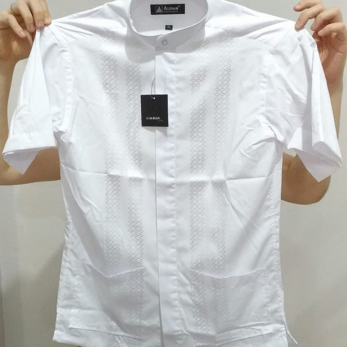 Hot Promo Alisan Baju Koko Pendek Reguler Fit - Putih, S