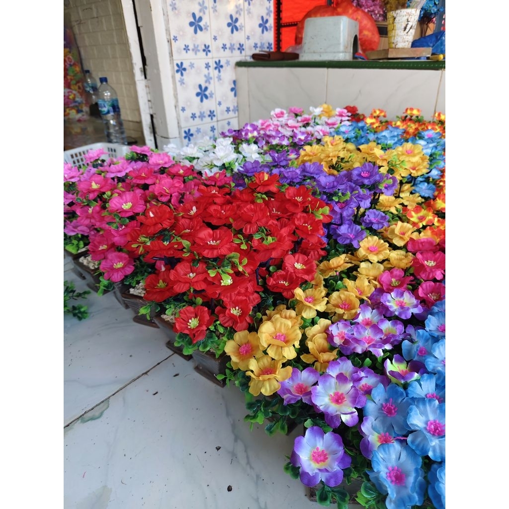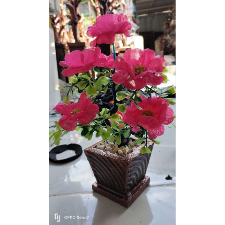 BUNGA PLASTIK + POT DAN BATU // ORNAMEN POT KAYU TANAMAN PAJANGAN ARTIFICIAL DEKORASI SUDUT RUANGAN// SEMANGGI 25CM