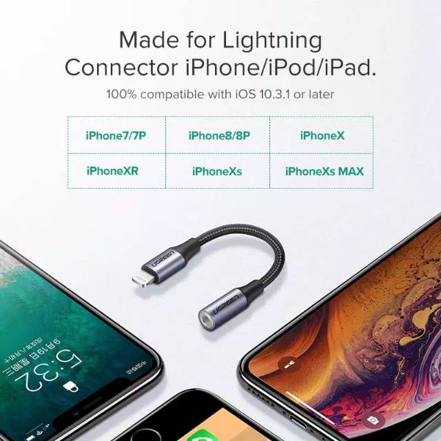 Ugreen Converter Splitter MFI Lightning Cable to Jack AUX 3.5mm Untuk iPhone 14 13 12 11 XR XS X 8 7 Pro Max Kabel Audio Earphone