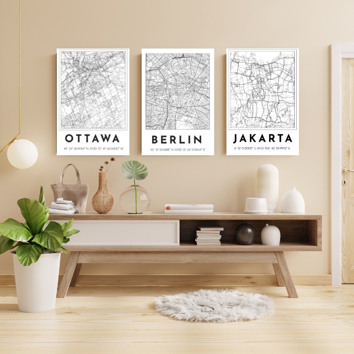 Hiasan DInding City Map Poster dekorasi gambar kota jakarta mekah unik