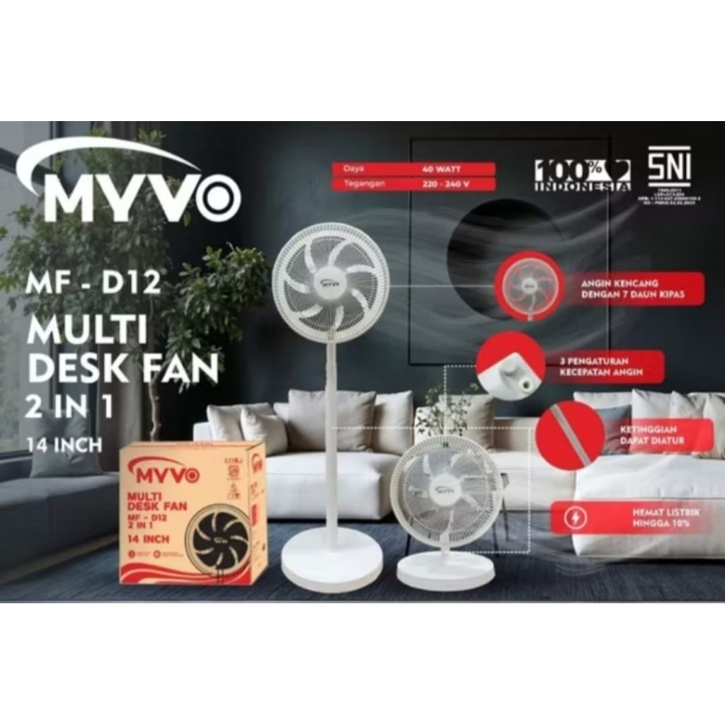 Kipas Angin Berdiri 14inci Myvo Multi Desk Fan 14" MF-D12 2in1 Stand Fan 14inch