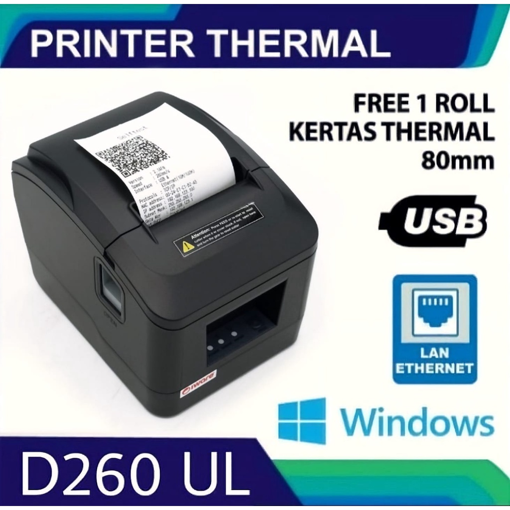 PRINTER KASIR THERMAL AUTOCUTTER 80MM PORT USB + LAN IWARE D260 UL GARANSI 1 TAHUN