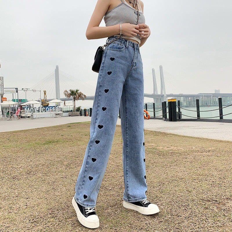 Celana Panjang HW Kulot Jeans Love Boyfriend Jeans Korea Jeans Celana Jeans Impor- Rina Fashion
