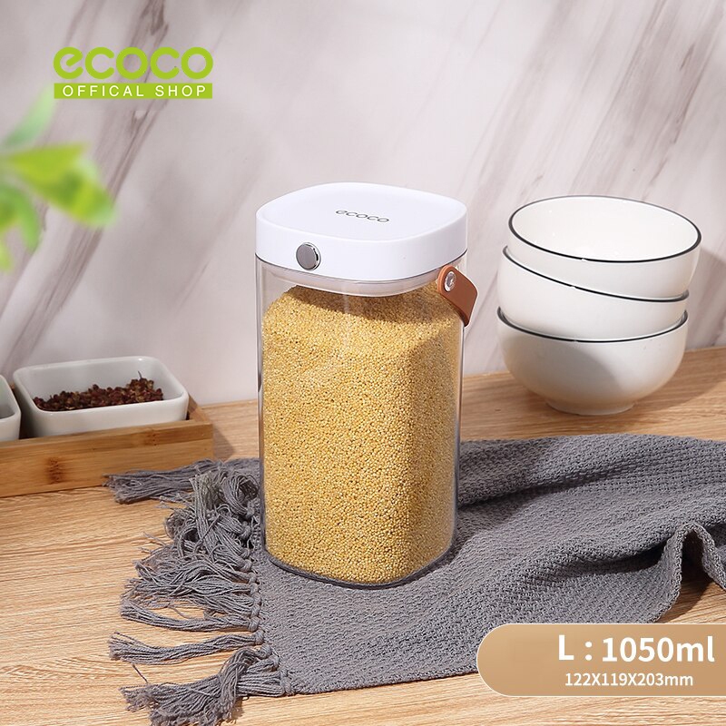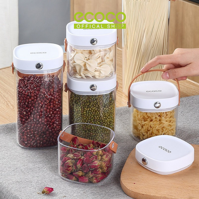 Ecoco Sealed Jar - Toples Jar Container Transparan Kedap Udara Airtight Minimalis Kotak Kontainer Tempat Penyimpanan Makanan Bumbu Snack Sereal Fridge Refrigerator Kulkas Box dengan Handle Anti Tumpah