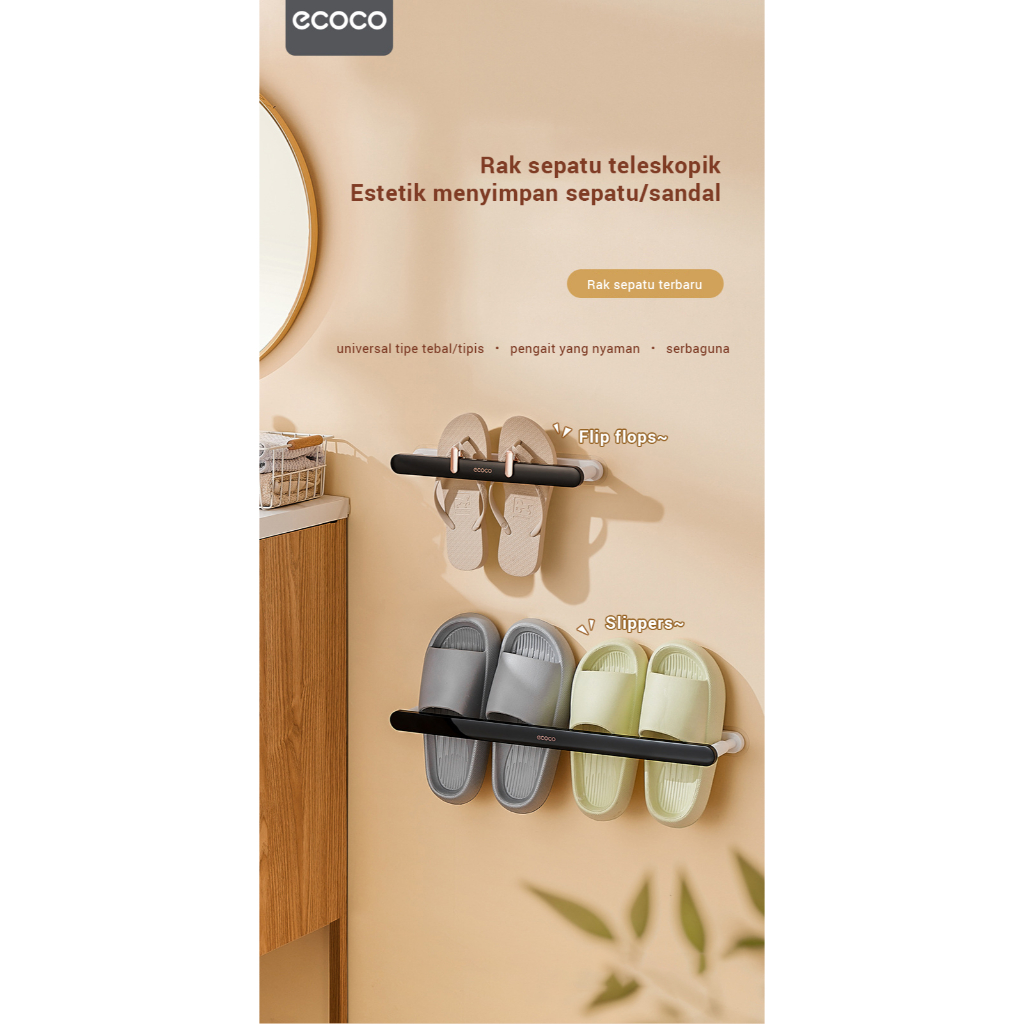 ECOCO Shoe Rack - Rak Sepatu Organizer Tempel Anti Air Serbaguna Portable Tempat Sepatu Sport Sandal Slipper Rak Handuk Multifungsi Bongkar Pasang