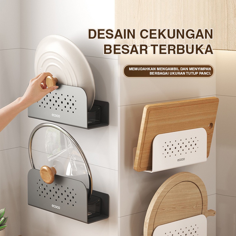 ECOCO Wall Mounted Cutting Board Aluminium Rack - Rak Talenan Rak Dapur Tutup Panci Gantungan Spatula Sotil Gantungan