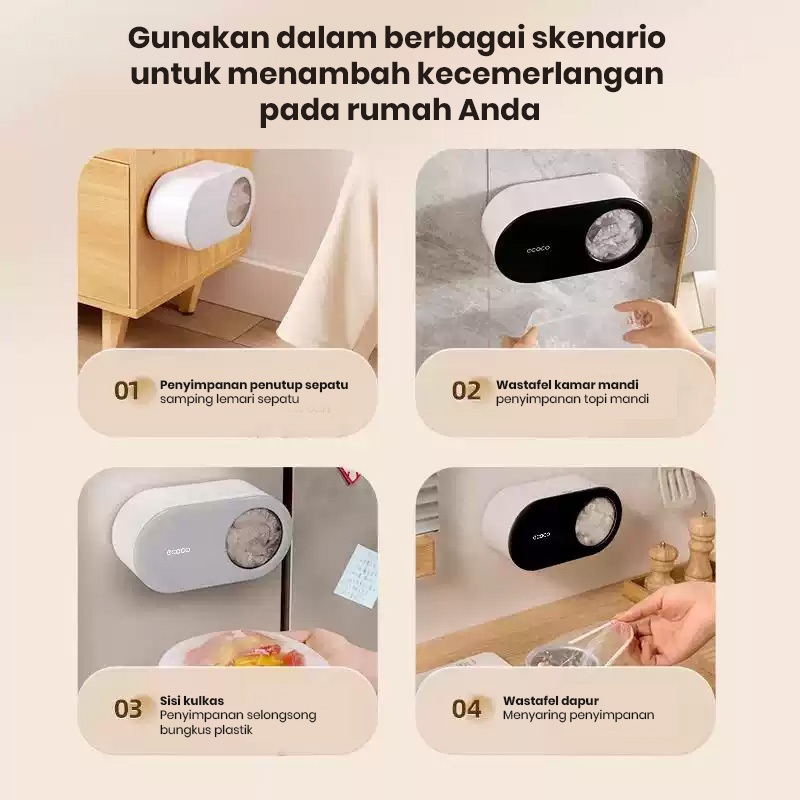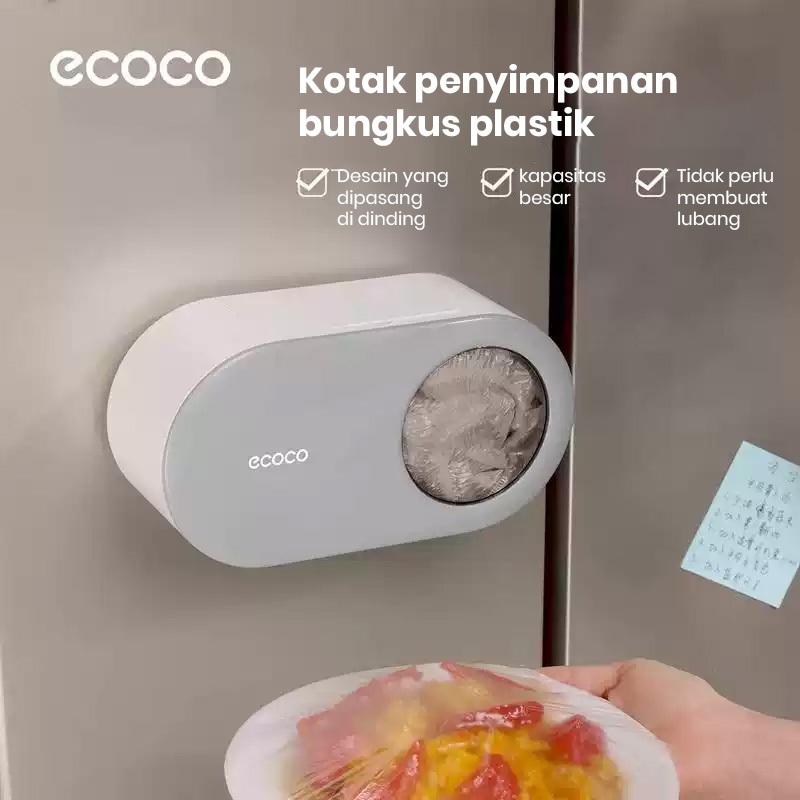ECOCO Food Storage Cover Wall Rack - Kotak penyimpanan bungkus plastik yang dipasang di dinding penyimpanan penutup kantong plastik sekali pakai aman untuk makanan untuk penggunaan dapur