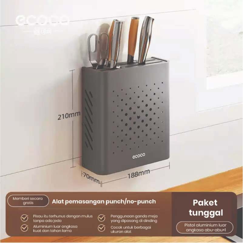 ECOCO Knife Storage Aluminium Rack - Rak Penyimpanan Rak Pisau Dapur Terbaru Rak Pisau Dapur Multifungsi Terpasang Di Dinding Rumah Tangga Baru Rak Penyimpanan Pisau