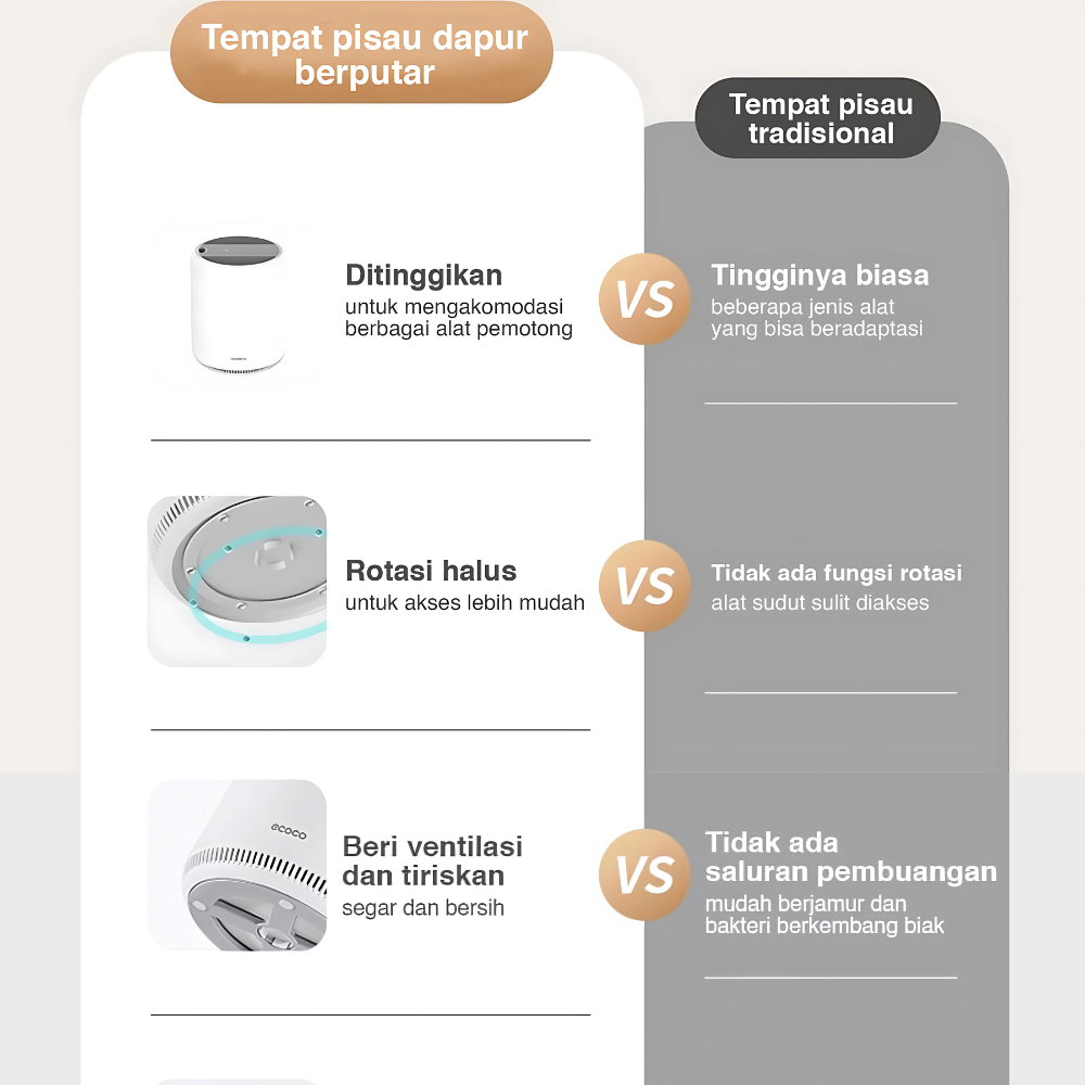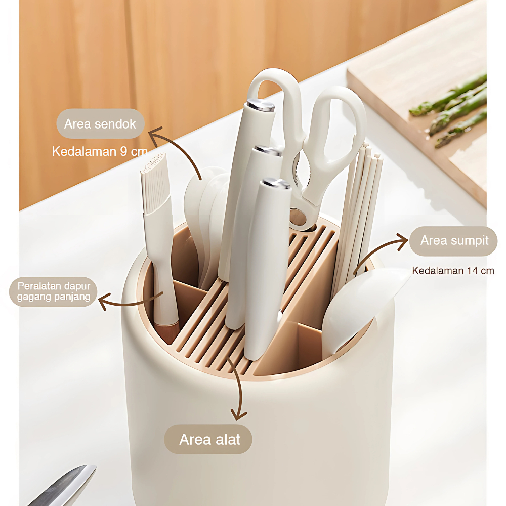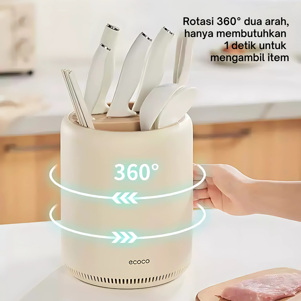 ECOCO Rotary Knife Holder - Rak Penyimpanan Tempat Pisau Putar Dapur Rak Pisau Dapur Meja Rumah Tangga Tempat Pisau Barel Sumpit Multifungsi Kotak Penyimpanan