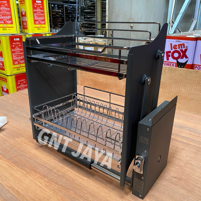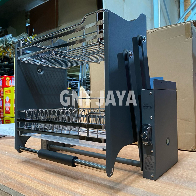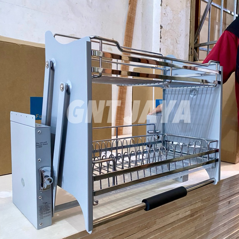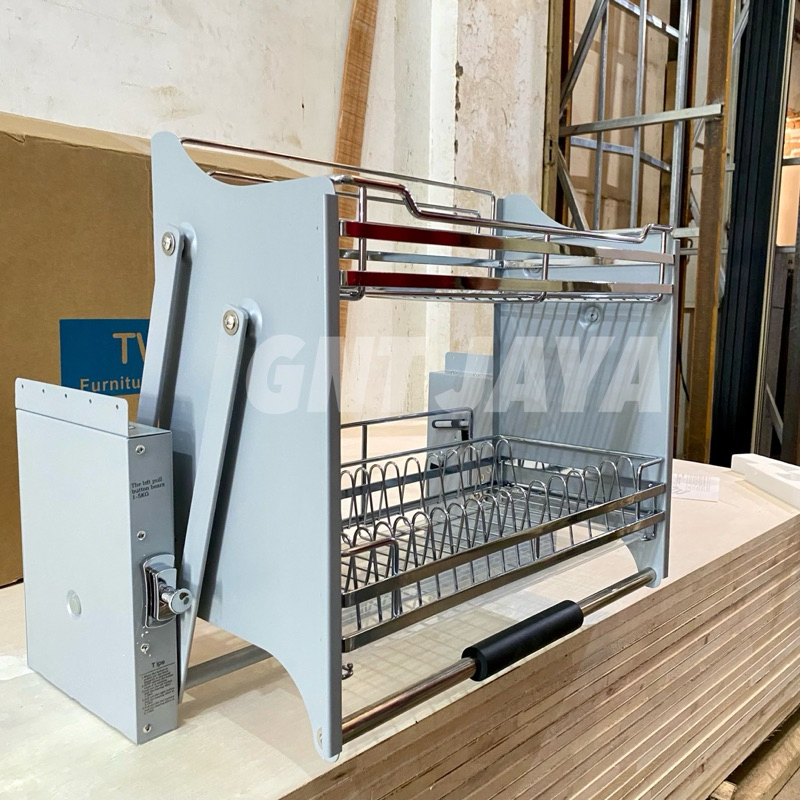 RAK PIRING PULL DOWN bisa ditarik ke bawah kode WE60 WE70 WE80 WE90 tempat mangkok gelas peralatan dapur lemari kabinet atas tarik kitchen set pulldown WE 60 70 80 90 cm