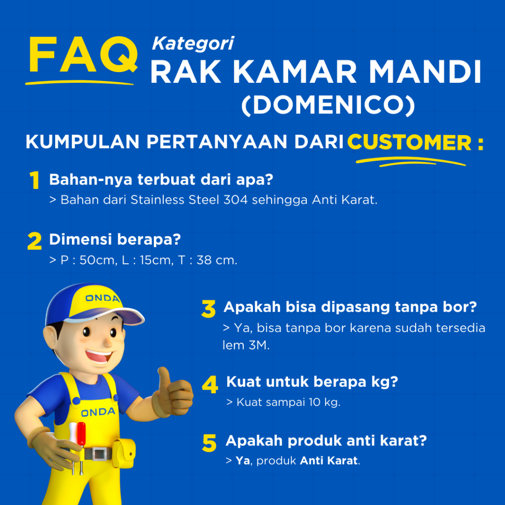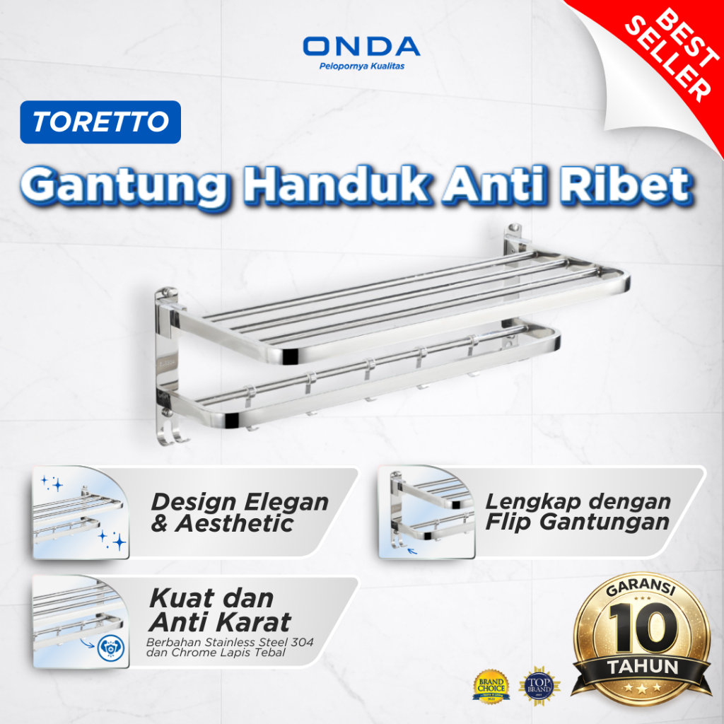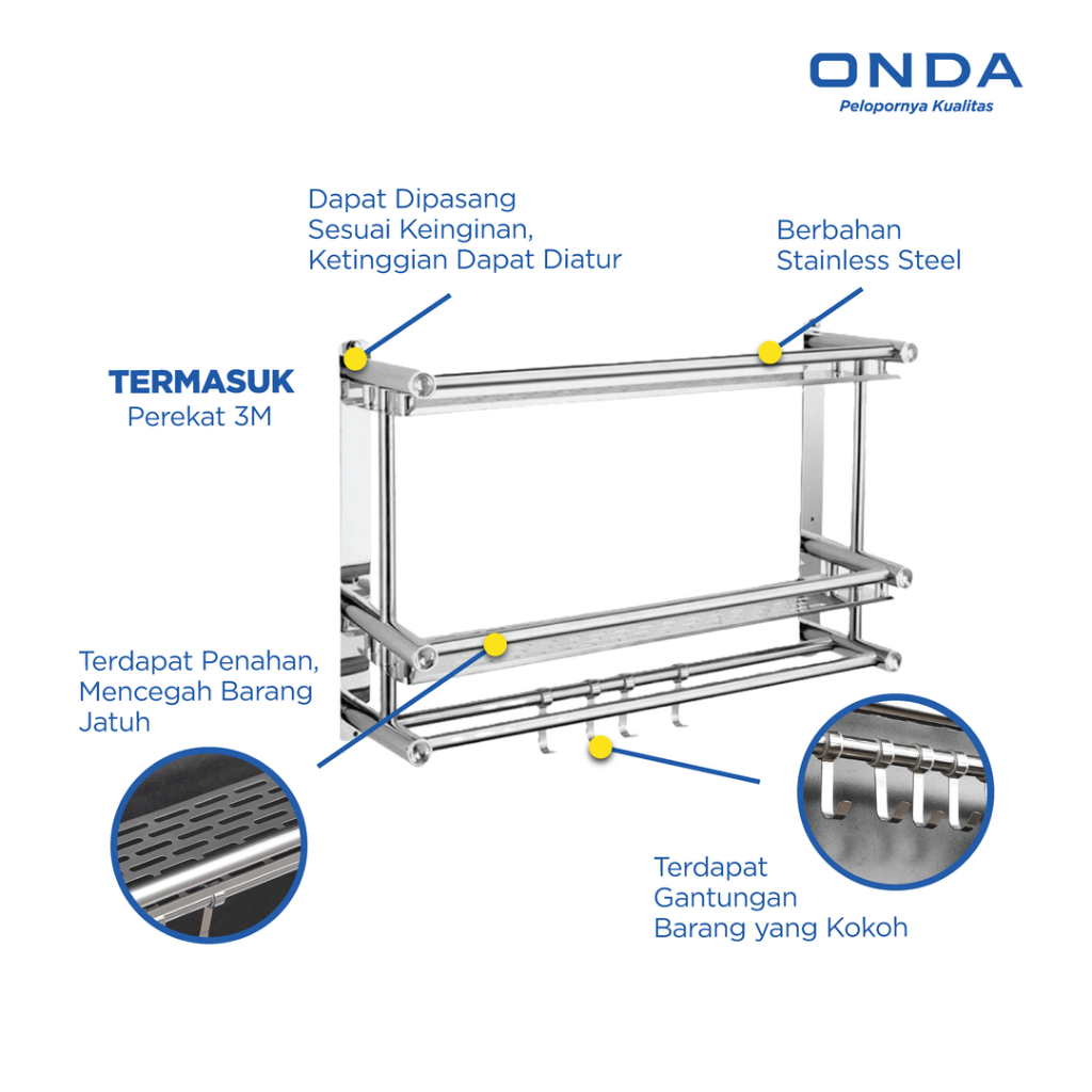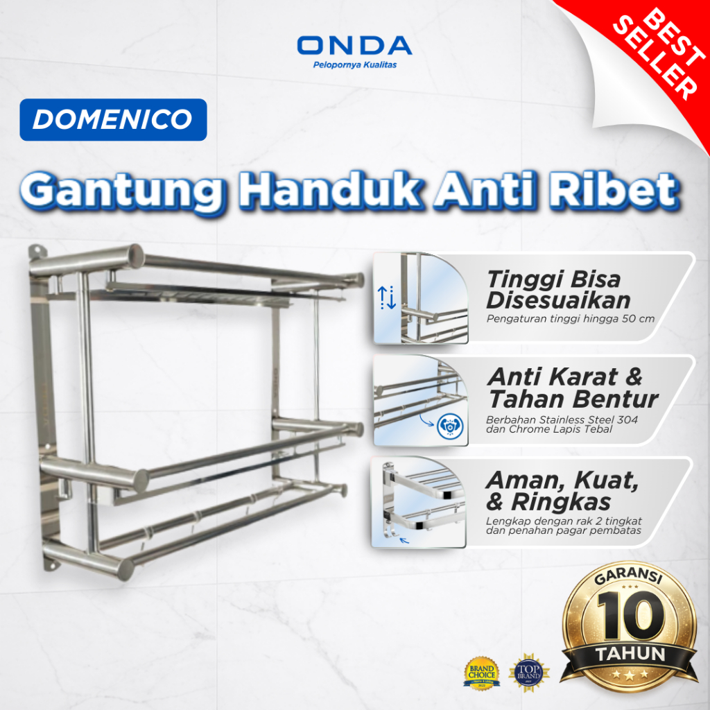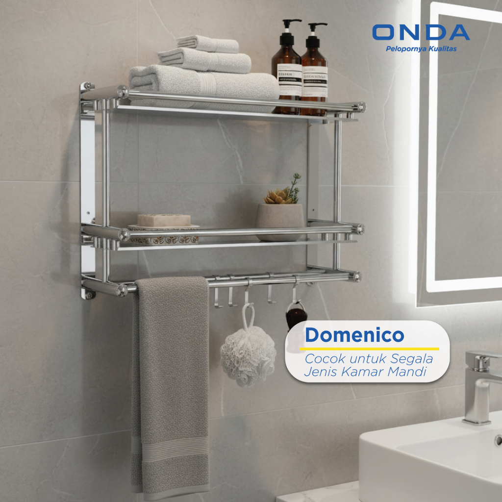 ONDA Rak Sabun Handuk Baju Gantungan Rak Dinding Kamar Mandi Double Anti Karat DOMENICO