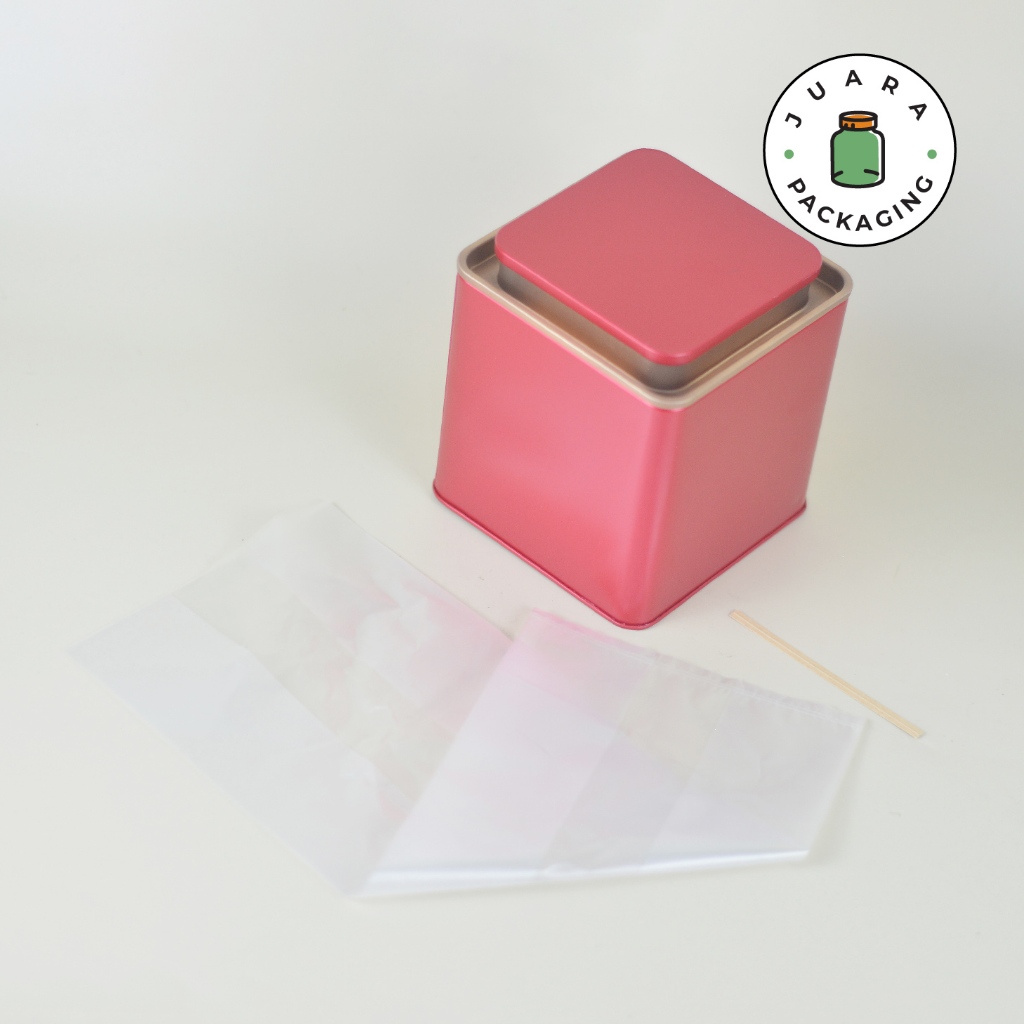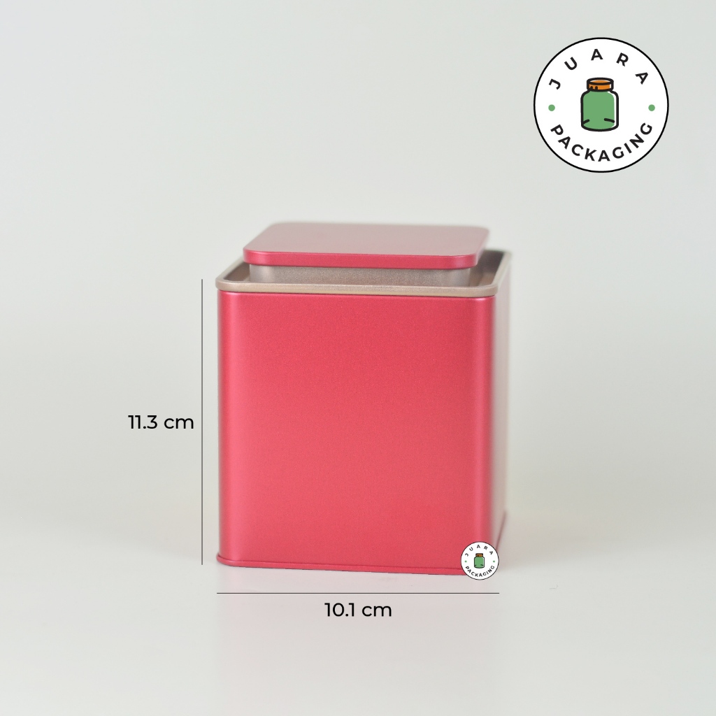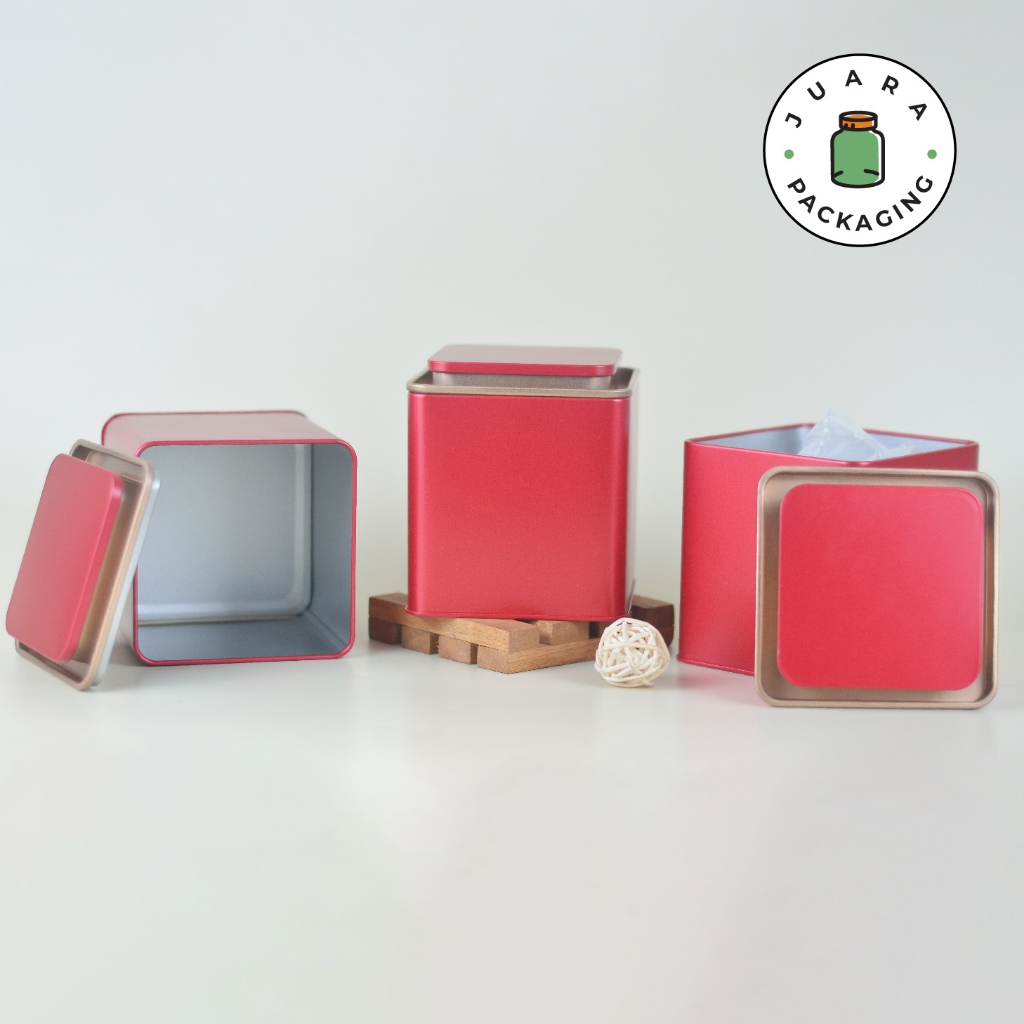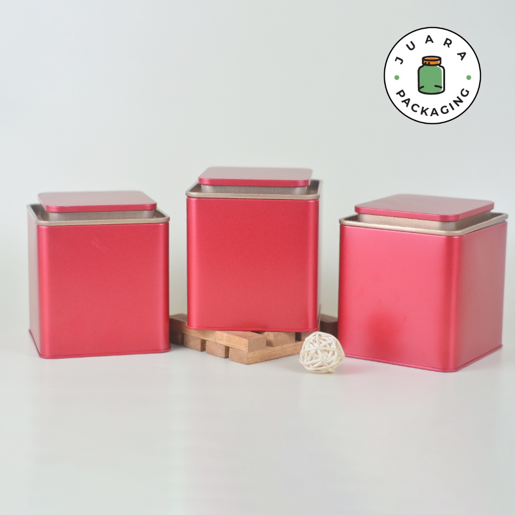 Jar Tin Can Kotak Merah + Plastik – Wadah Matcha Powder Ceremonial Grade Pure 100% Tempat Teh Kedap Udara Kontainer Serbaguna Wadah Kopi Bubuk Toples Bumbu Rempah Herbal Tepung Powder Isi Ulang Elegan