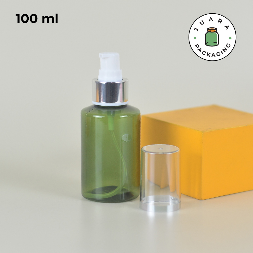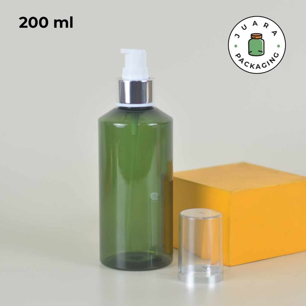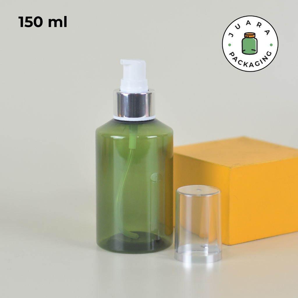 Botol Plastik PET Hijau Pump Putih Tutup Transparan List Silver 100ml 150ml 200ml – Wadah Kosmetik Skincare Lotion Toner Sabun Cair Handbody Refill Travel Size Kuat Elegan Anti Bocor Nyaman Dibawa