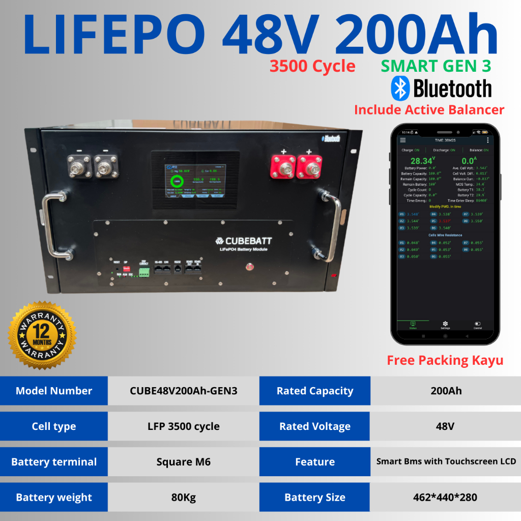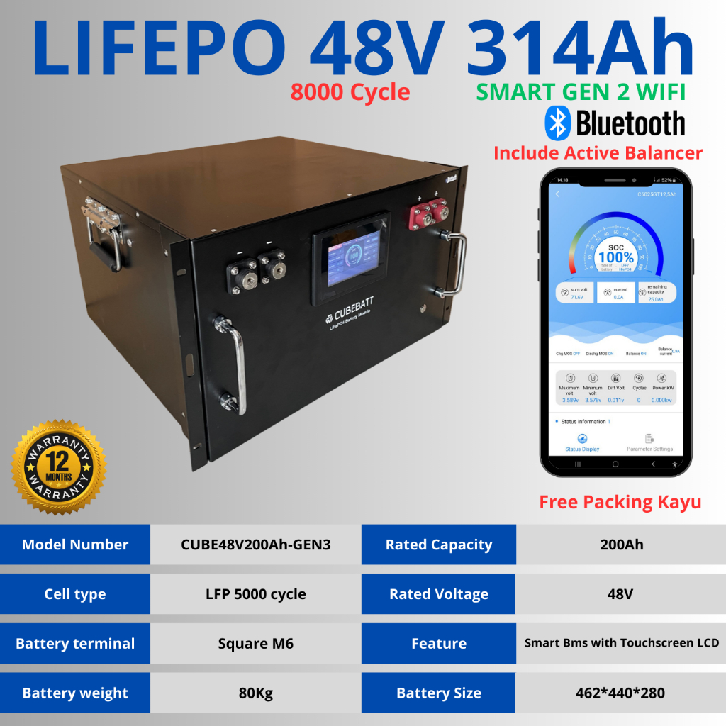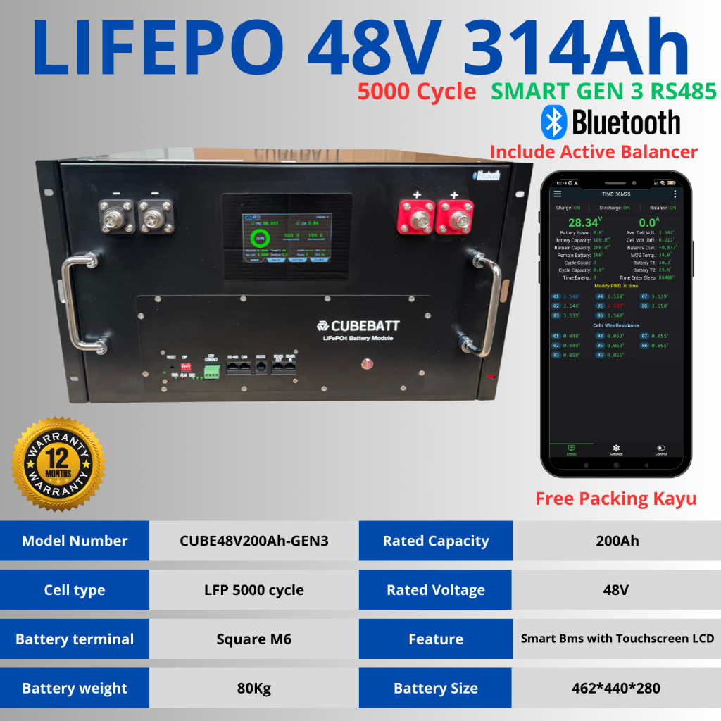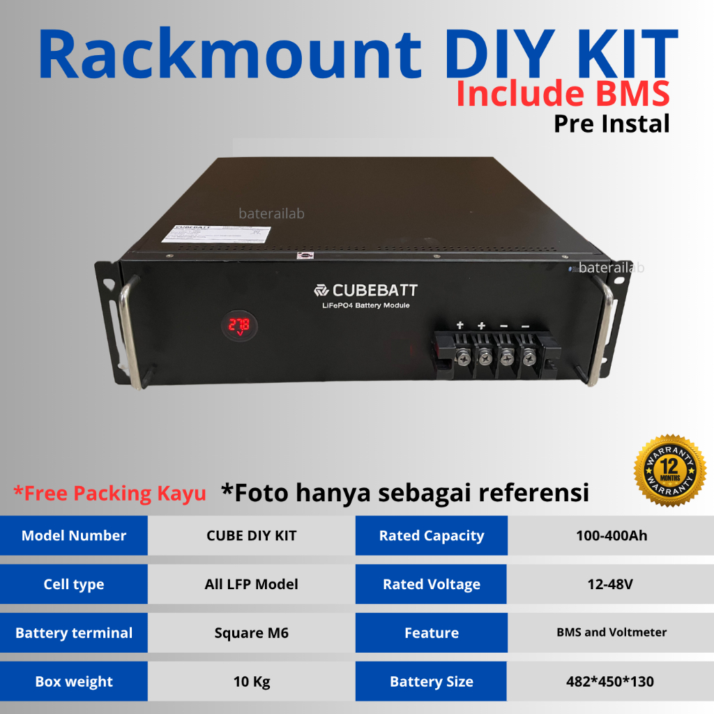 Box Baterai DIY plus BMS 12V 24V 36V 48V 100ah 200Ah 300Ah 400Ah Belum termasuk baterai