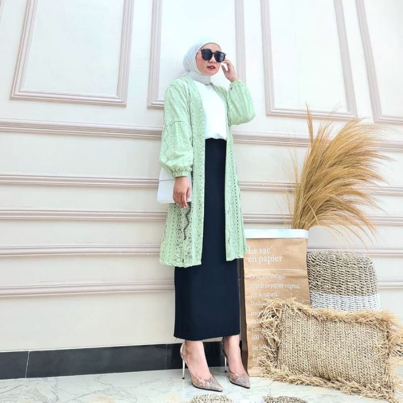 Cardigan Brukat Lengan Balon PREMIUM | Outer Burkat