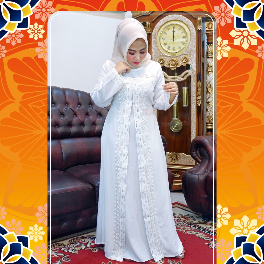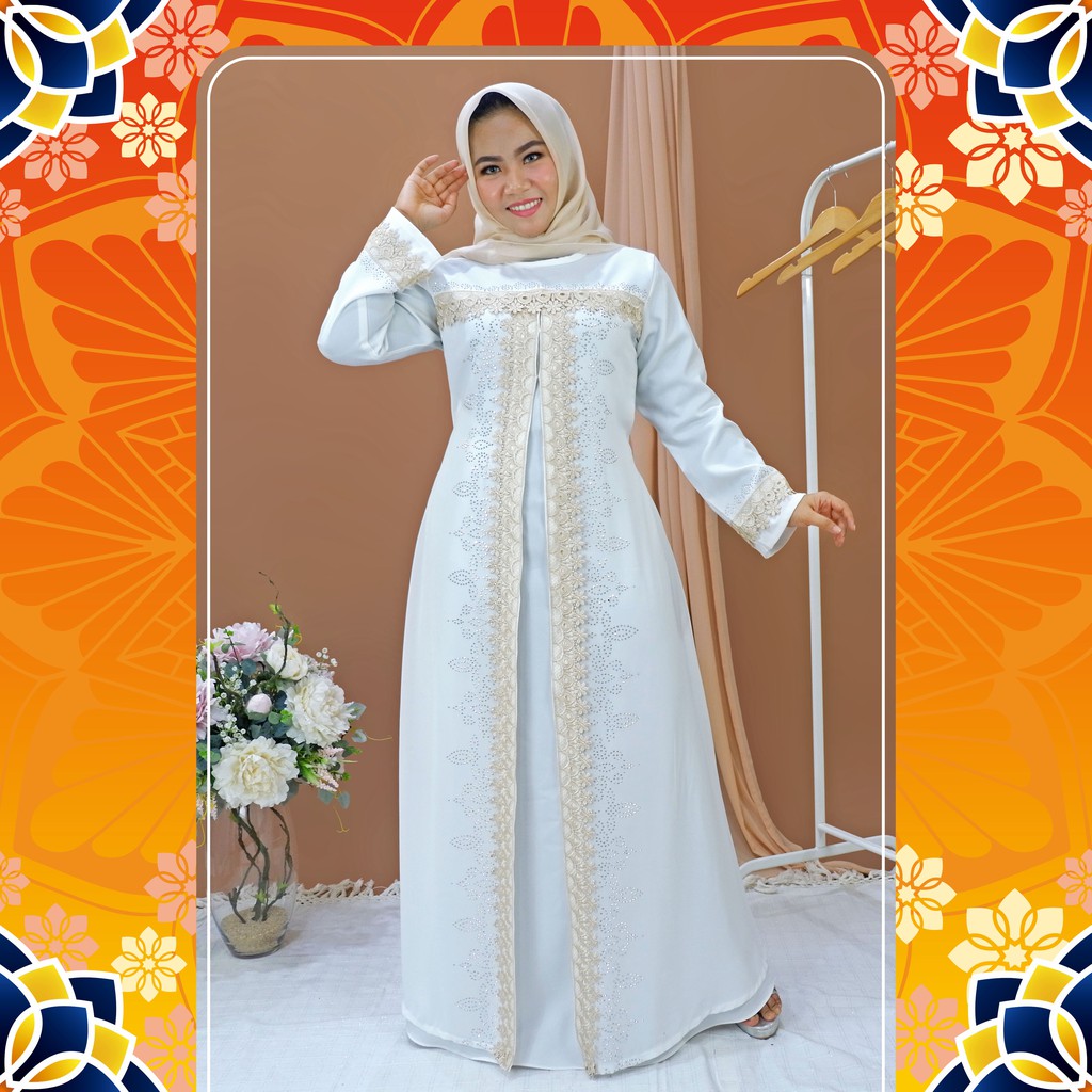 Harga Spesial [LaMarema] Gamis Putih Wanita Mewah Abaya Putih Turkey Mewah Baju Gamis Abaya Putih Terbaru