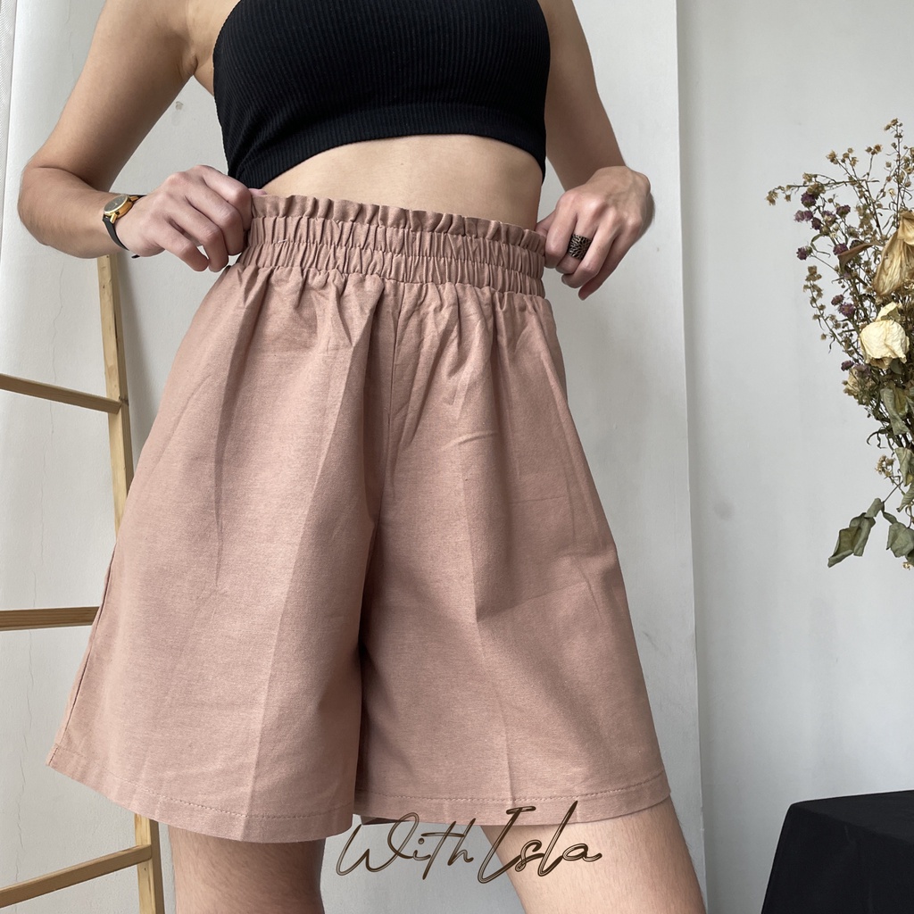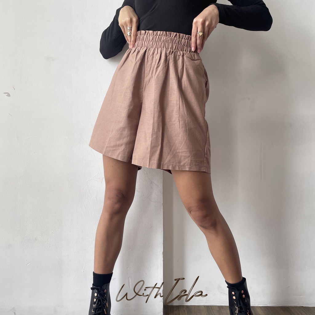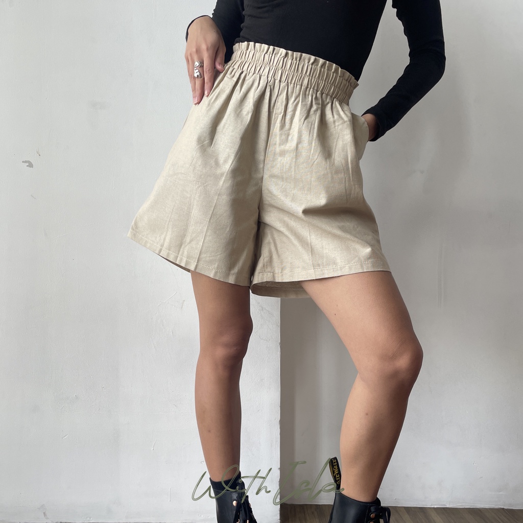 WITH ISLA - Doja Shorts / Celana Pendek Casual Wanita Linen High Waist Fit To XL Fashion Wanita