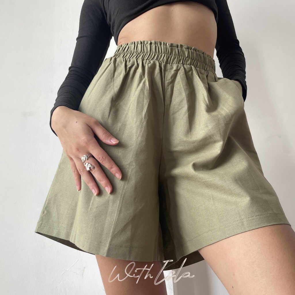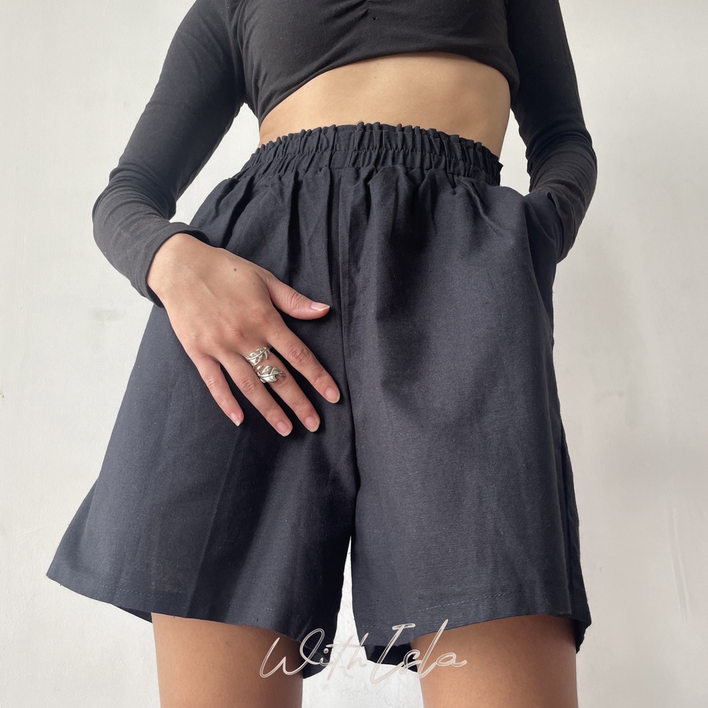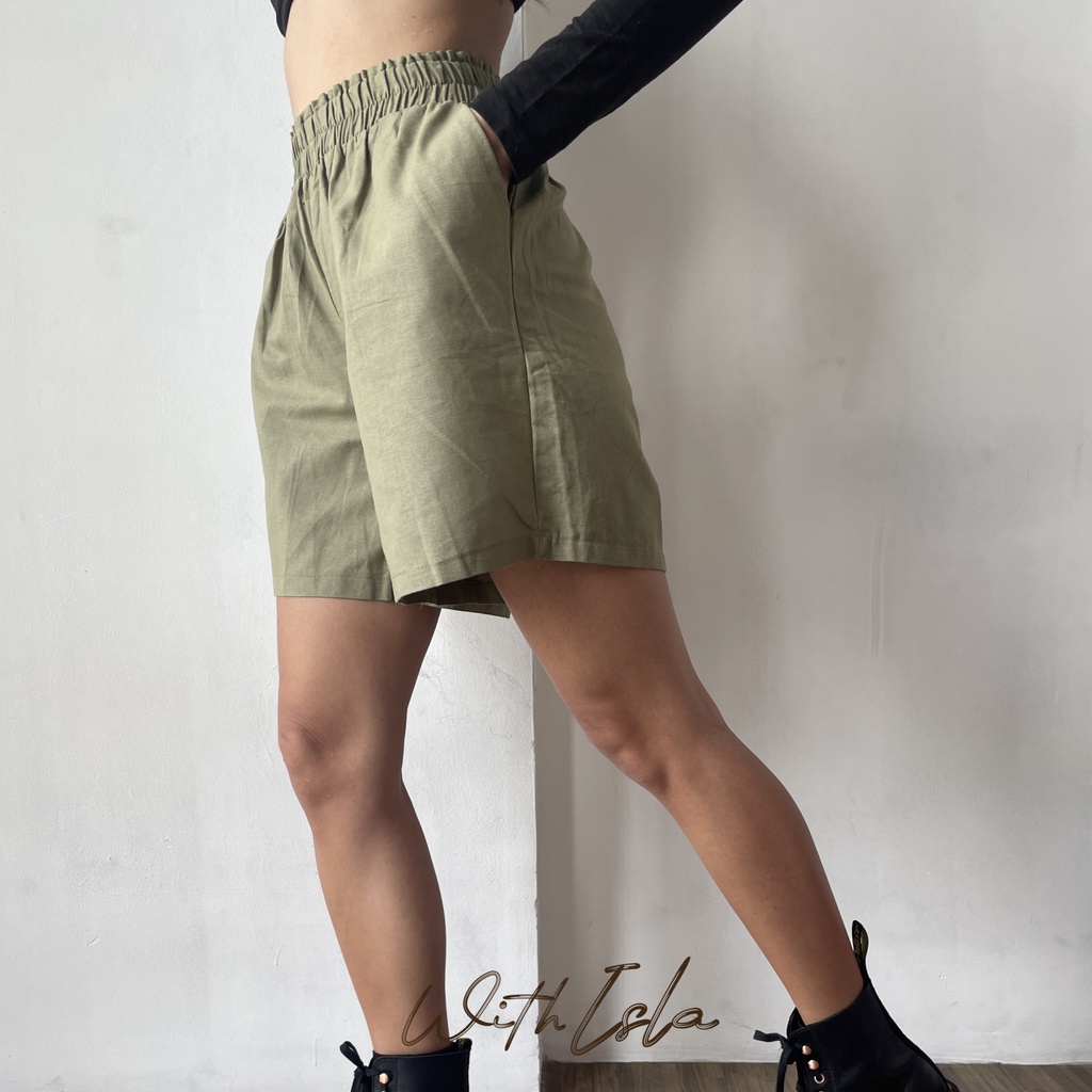 WITH ISLA - Doja Shorts / Celana Pendek Casual Wanita Linen High Waist Fit To XL Fashion Wanita
