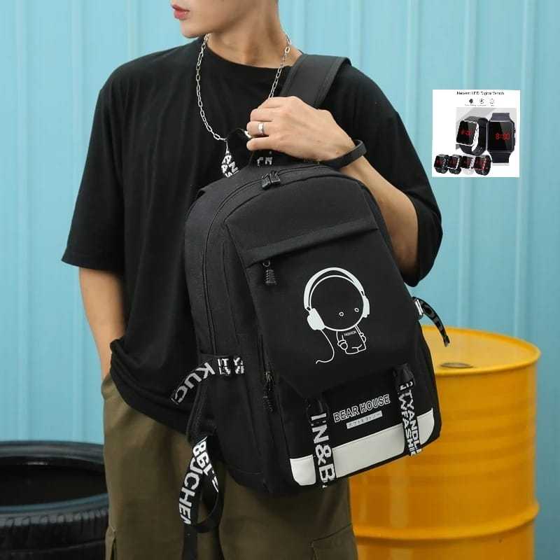 Tas Ransel Pria Wanita Baepack Gendong Kekinian Piral FRRE Jam Dompet
