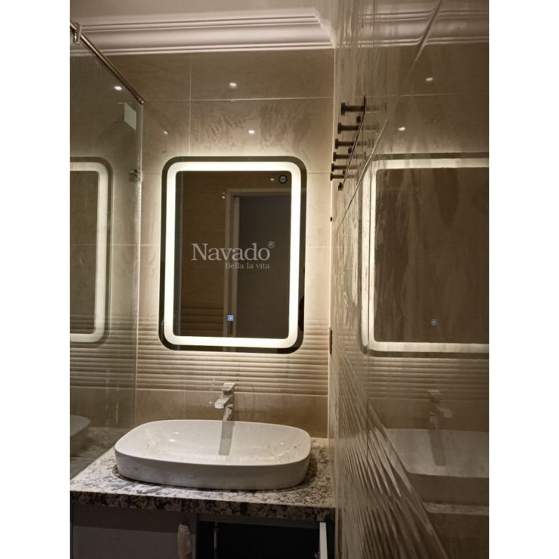 Kaca Cermin Touchscreen LED Dinding Kamar Mandi Wastafel