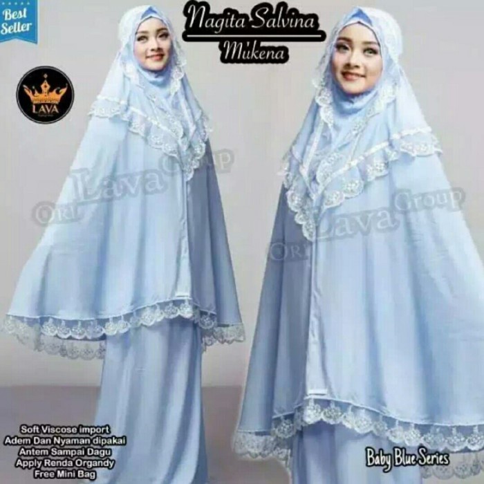MUKENA NAGITA SLAVINA RENDA TULLE KHADIJAH PASTEELENA FASHION MUSLIM - Biru Muda, polos
