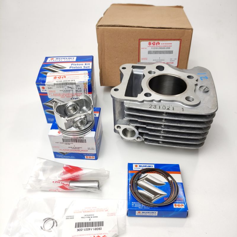 BLOK SEHER + PISTON KIT SHOGUN 125 OLD SP 2005-2006 11210-20G00-000 & 12100-20G30-0F0 ORIGINAL SGP SUZUKI GENUINE PARTS