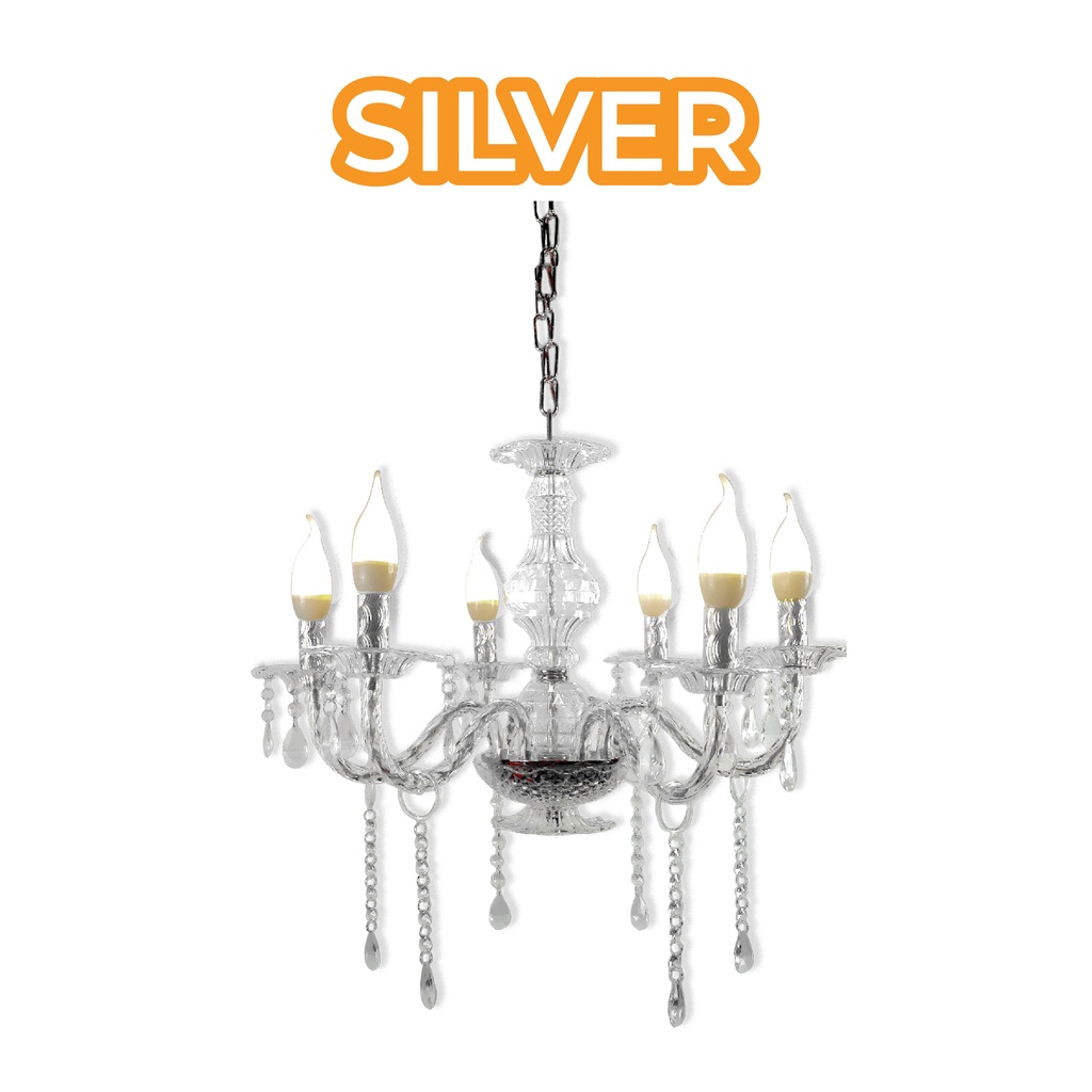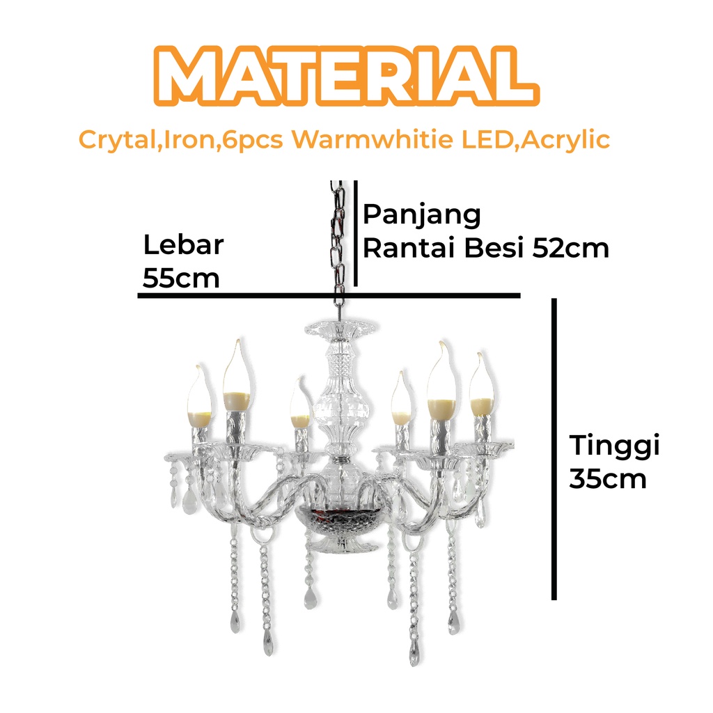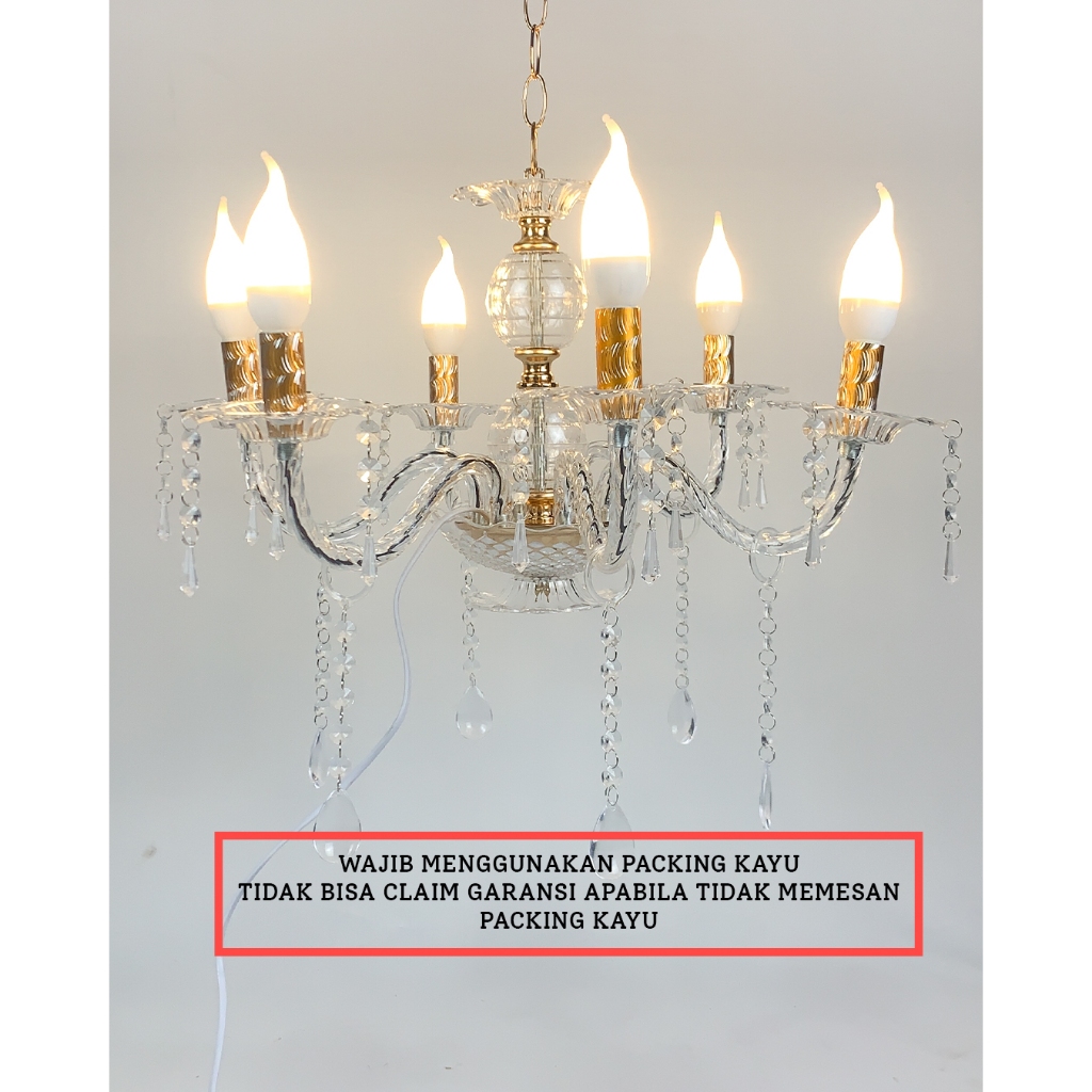 Lampu gantung chandelier candelabras akrilik kristal 6 head- lampu dekorasi pelaminan wedding