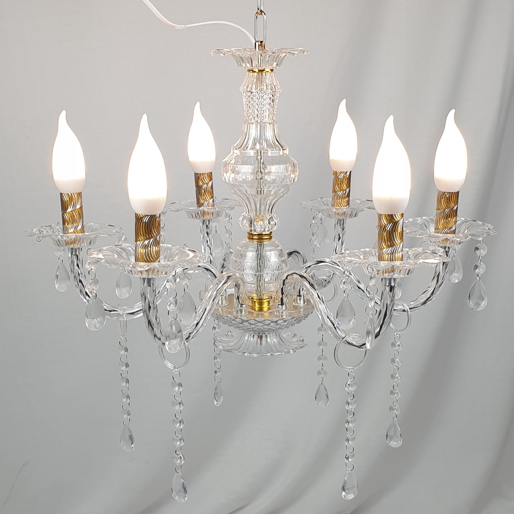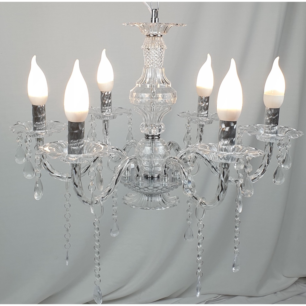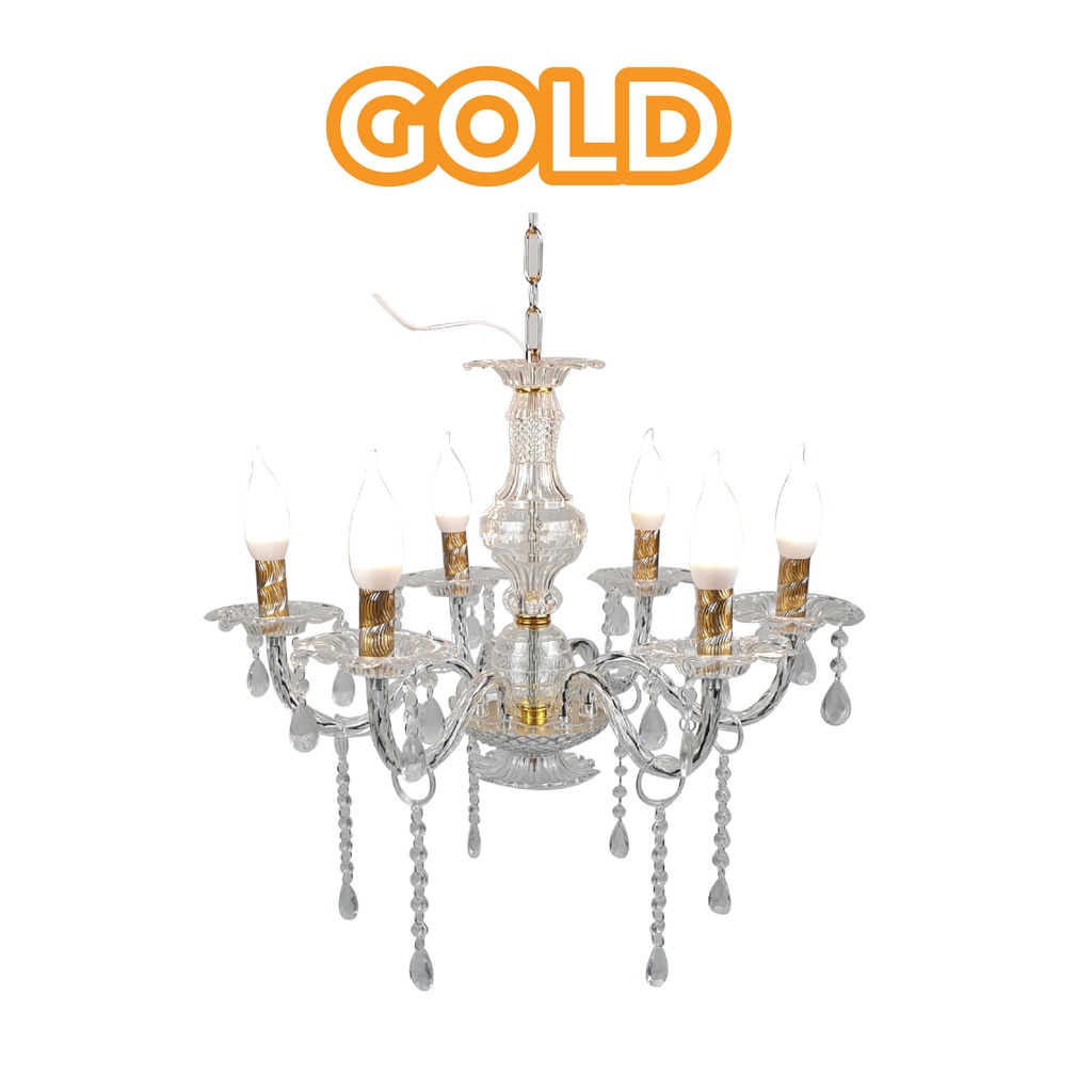 Lampu gantung chandelier candelabras akrilik kristal 6 head- lampu dekorasi pelaminan wedding