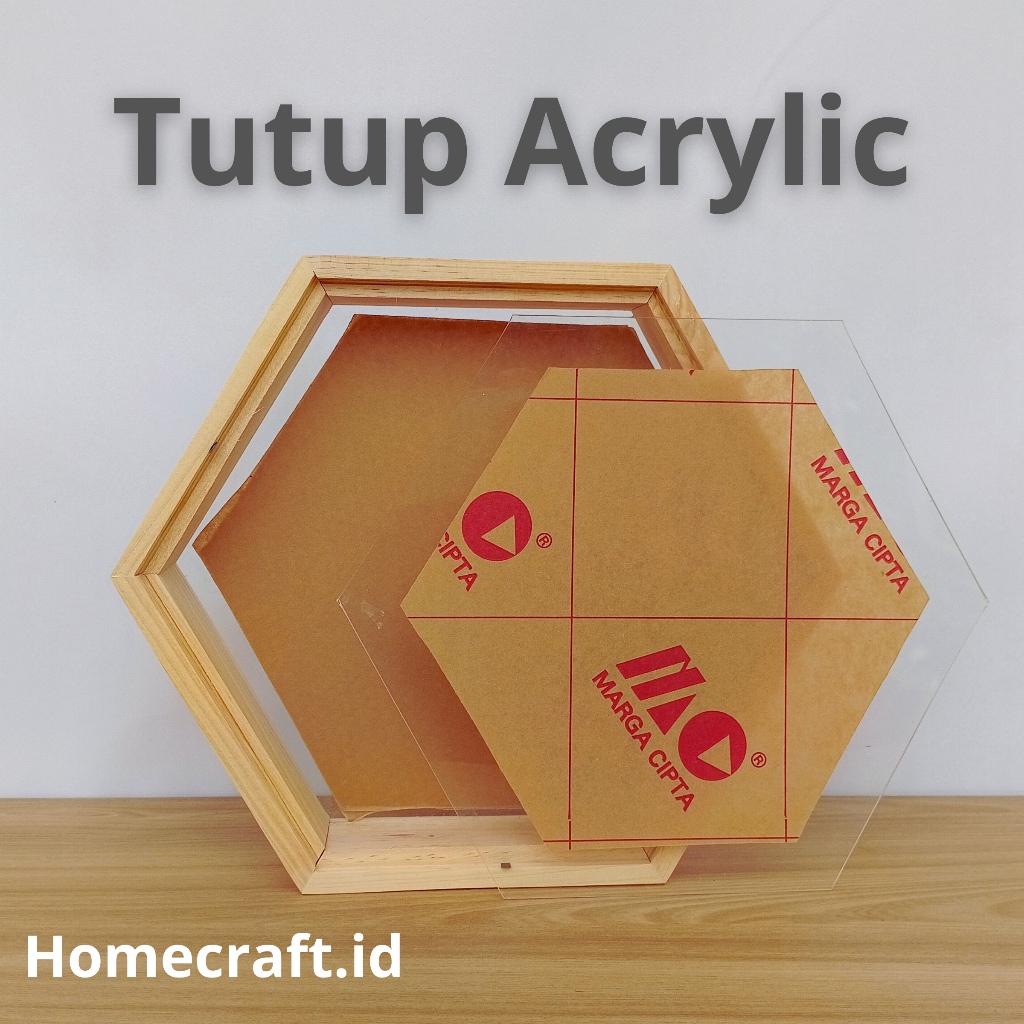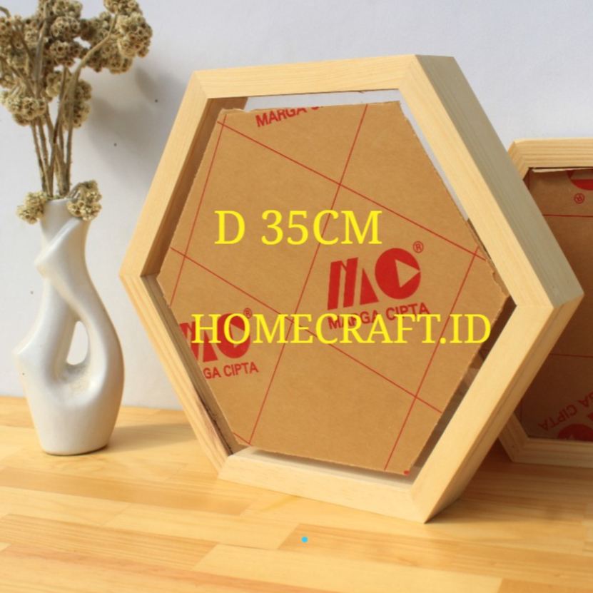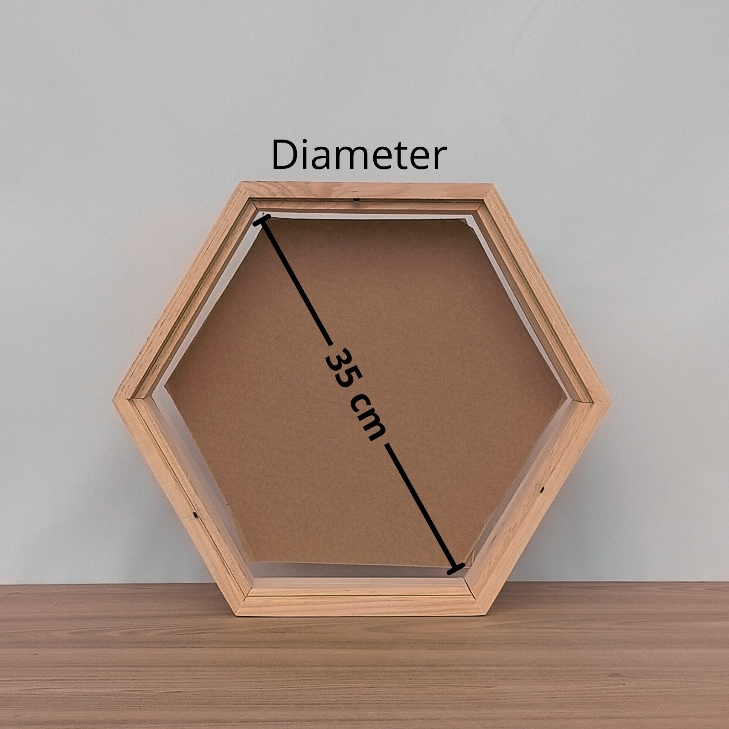 Bingkai Hexagonal 3D Kayu diameter 35cm