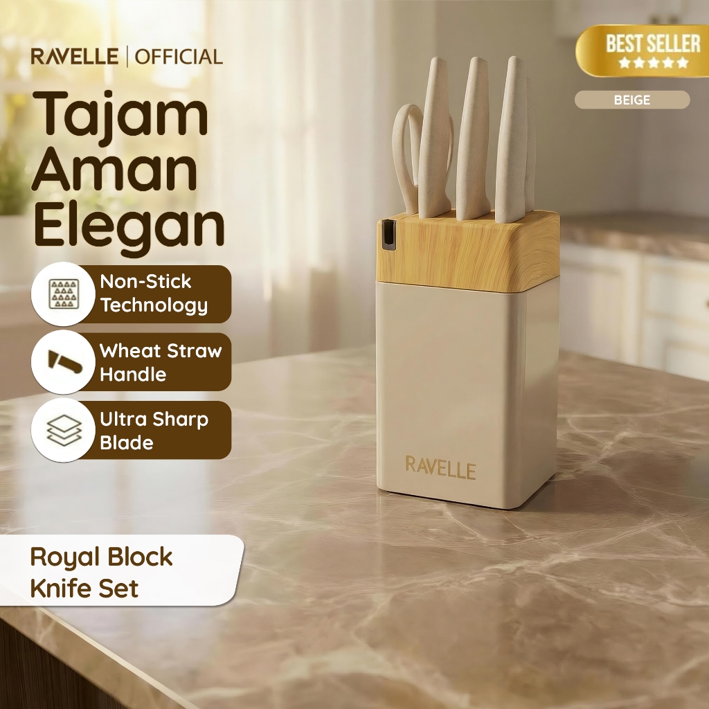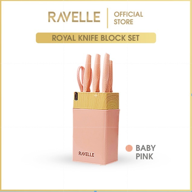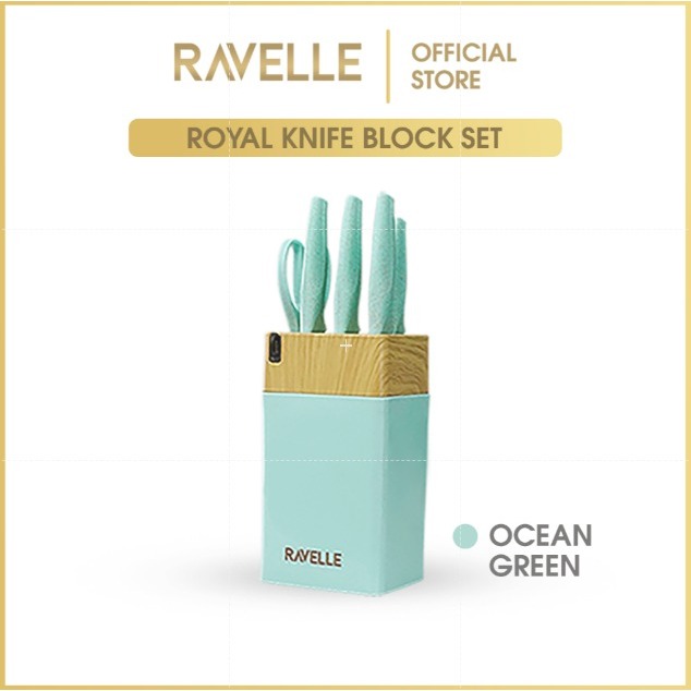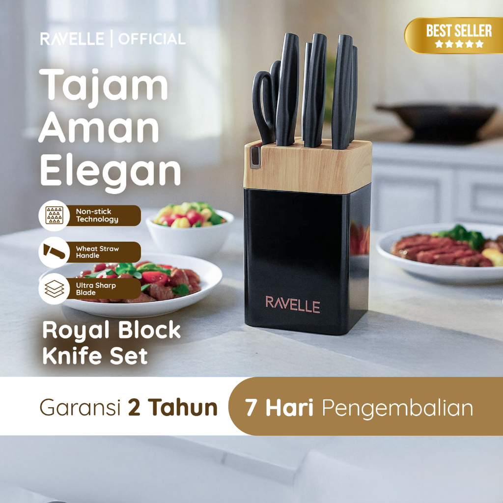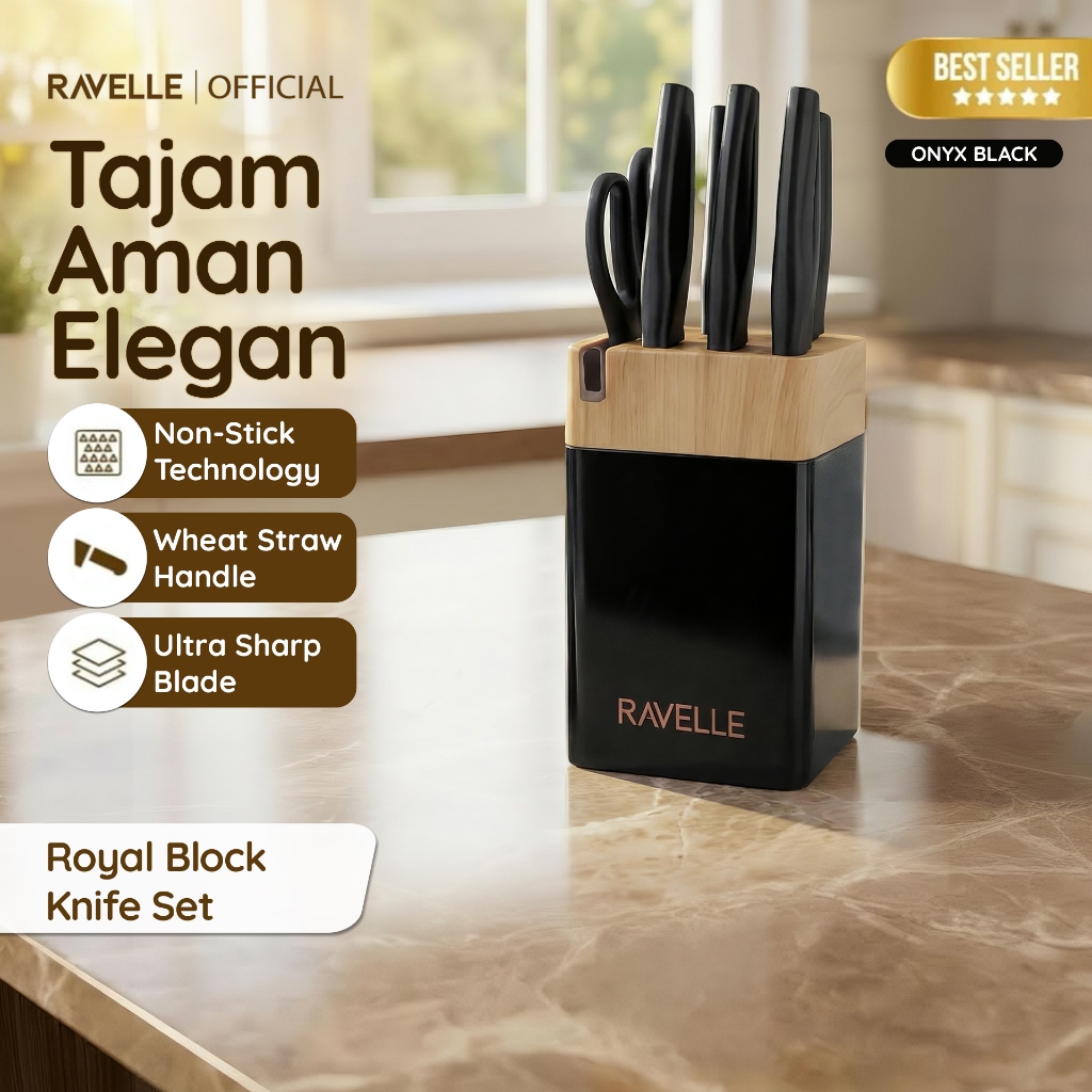 RAVELLE - Royal Block Knife Set 7IN1 Pisau Dapur Anti Lengket Stainless Steel, Knife Block, Gunting