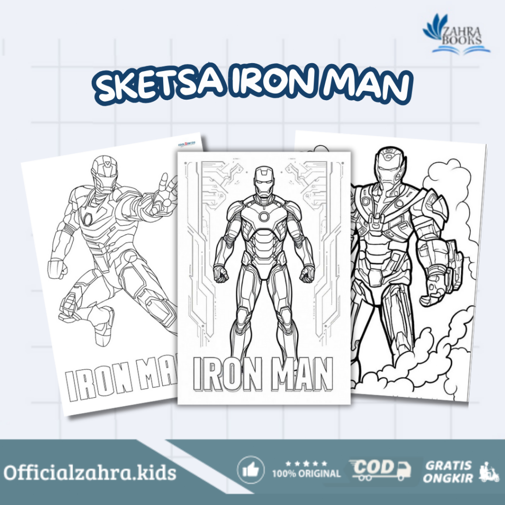 Sketsa Gambar Mewarnai Untuk Anak Paud dan TK Tema : Iron Man (Isi 20 Lembar)