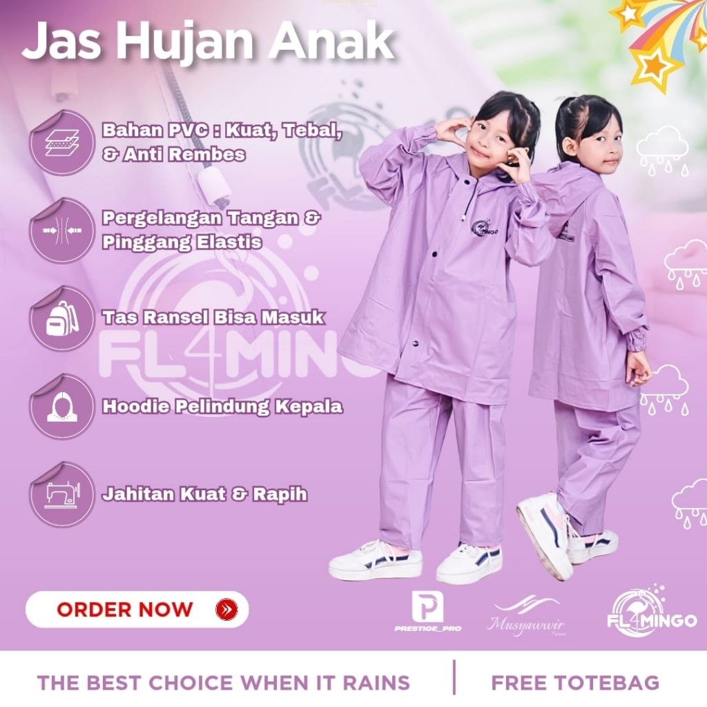 Jas Hujan Pria dan Wanita Anak / Jas Hujan Anak Anak Size S M L Bahan PVC Waterproof By FLAMINGO