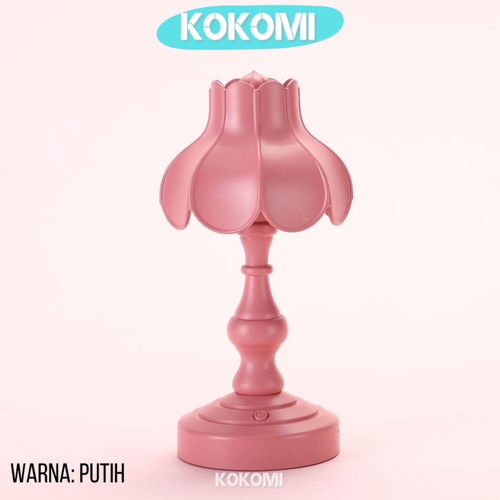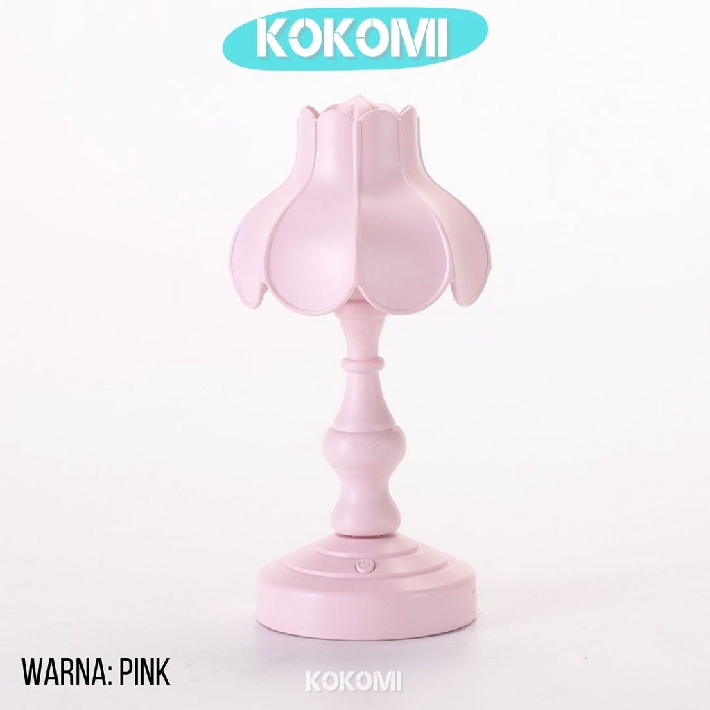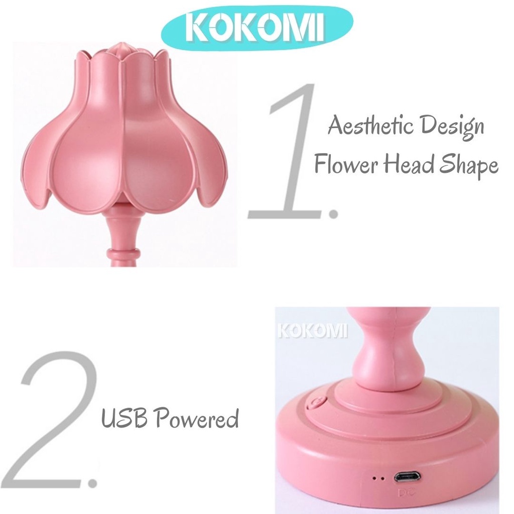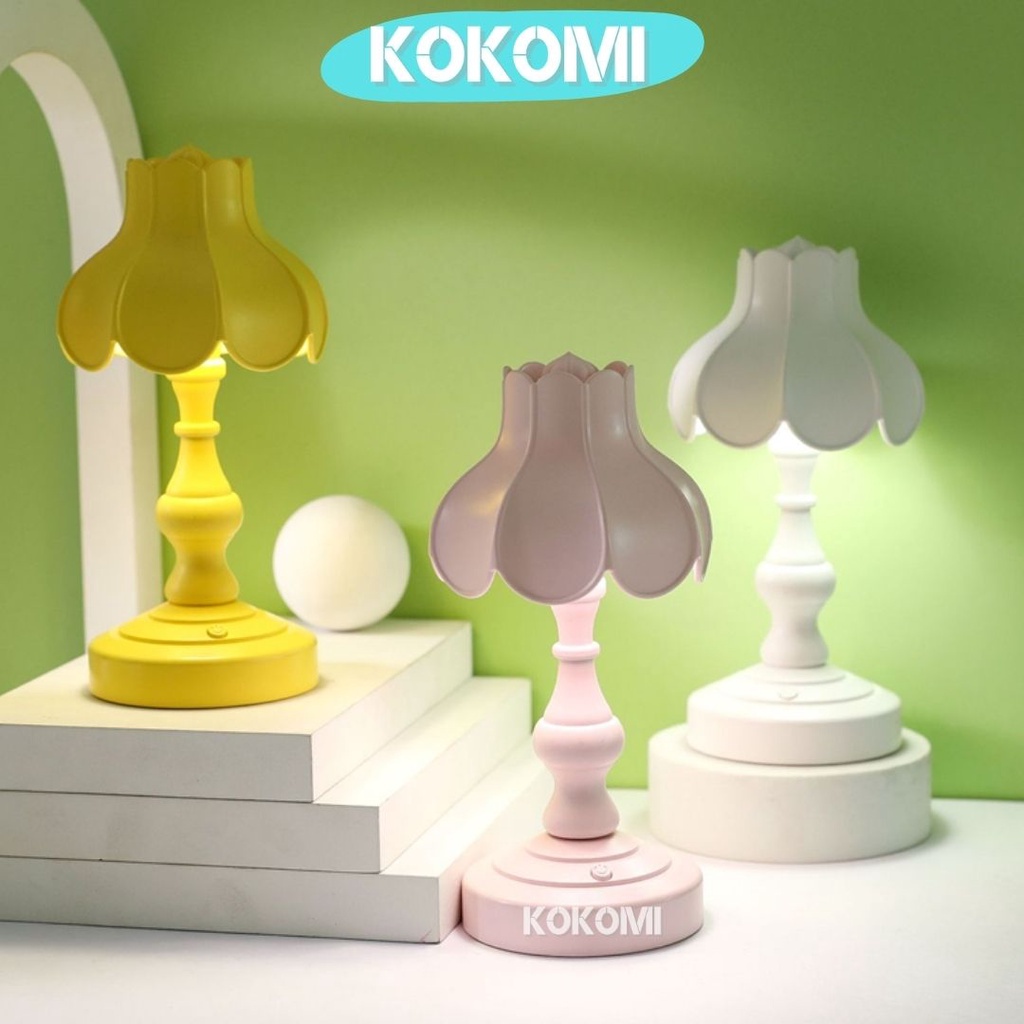 Kokomi Korea Flower Table Lamp Night Aesthetic Lamp Lampu Tidur Aesthetik Lampu Retro Vintage Bentuk Bunga 3 Tingkat Cahaya Lampu Kamar Lampu Meja LED Unik Lucu Warna Pastel Internal Rechargeable Baterry