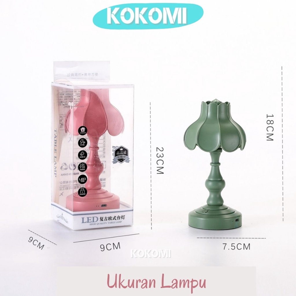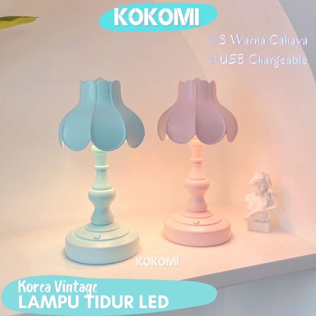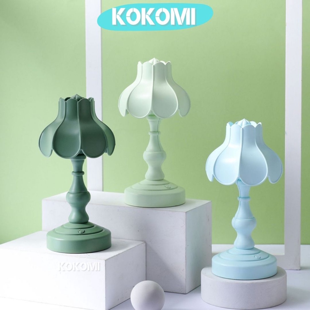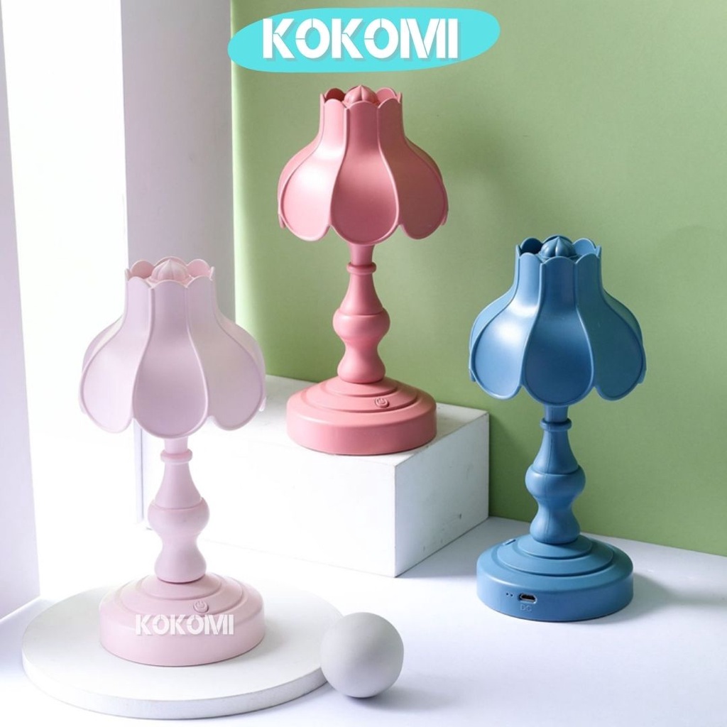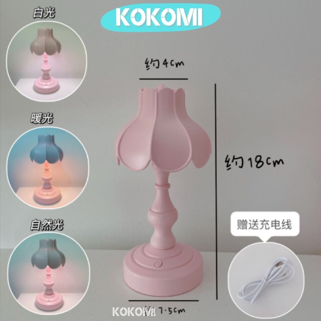 Kokomi Korea Flower Table Lamp Night Aesthetic Lamp Lampu Tidur Aesthetik Lampu Retro Vintage Bentuk Bunga 3 Tingkat Cahaya Lampu Kamar Lampu Meja LED Unik Lucu Warna Pastel Internal Rechargeable Baterry