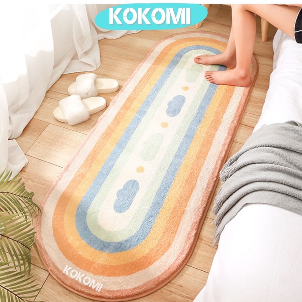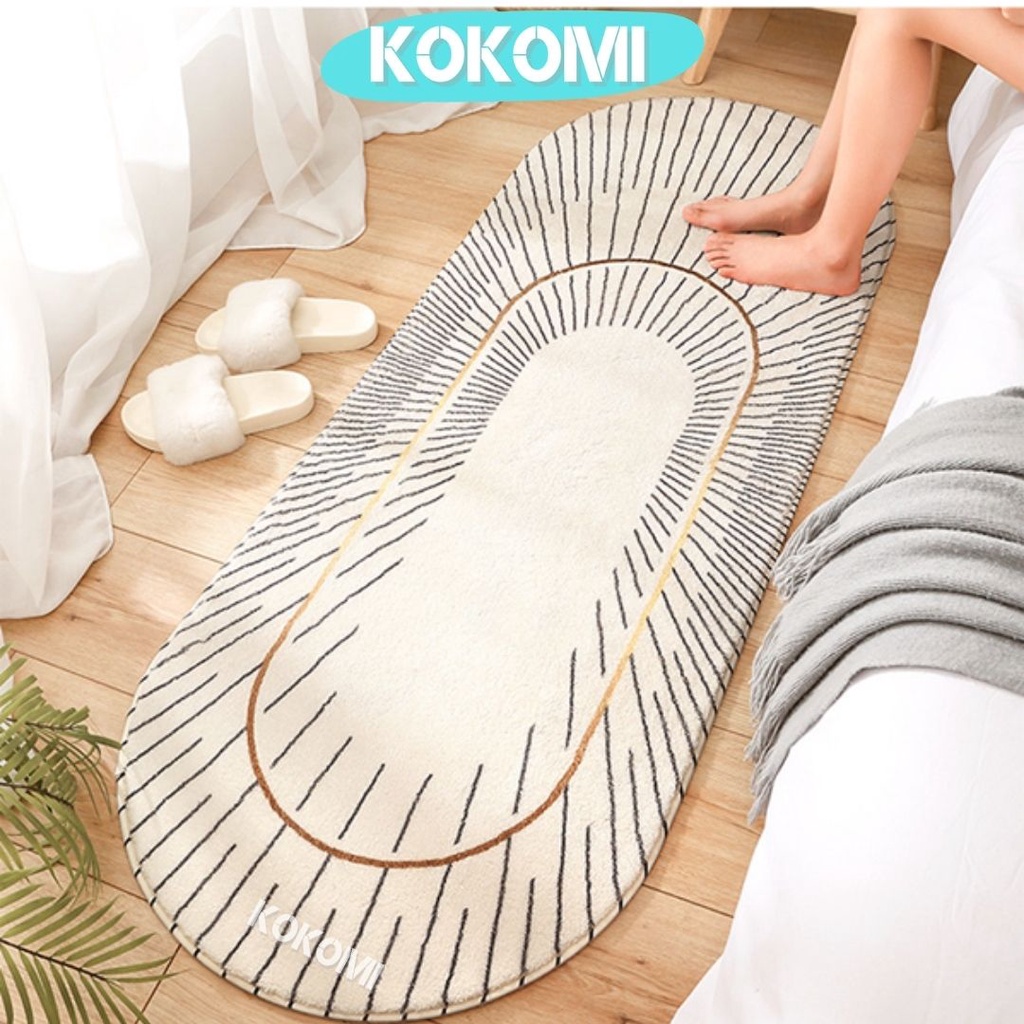 Kokomi Karpet Panjang OVAL Hotel Edition Karpet Kamar Aestetic 40 x 120cm Keset Panjang Karpet Bulu Unik Modern Minimalis Bahan Halus Lembut Dekorasi Kamar Tidur Anak Kamar Tamu
