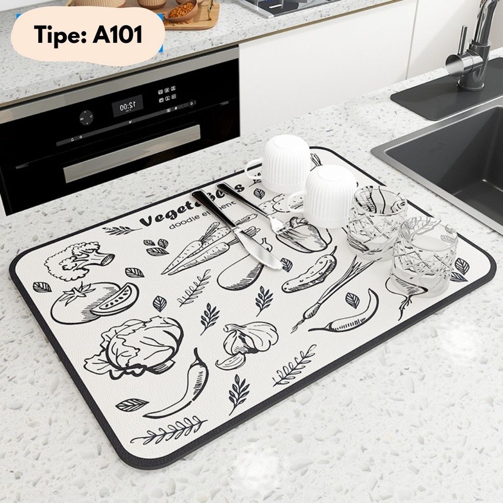 KOKOMI Alas Tatakan Piring Gelas Aesthetic COFFEE Placemat Dish Drying Mat Non Slip Menyerap Air Gam