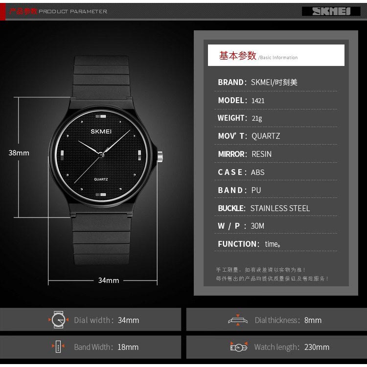 Jam Tangan Wanita SKMEI Analog 1421 Black Water Resistant 30M