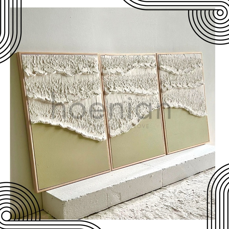 Textile art set of 3 , custom design , hiasan dinding textile , lukisan bertexture