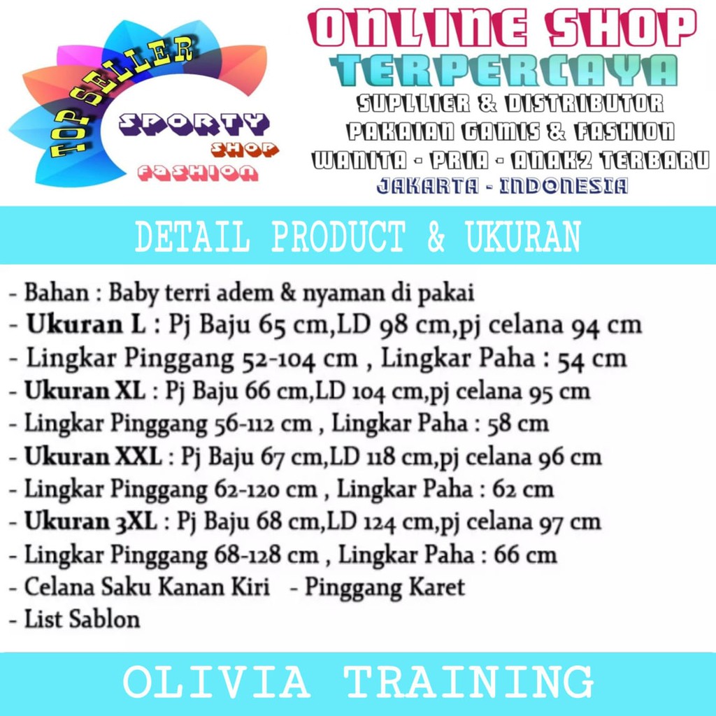 SS OLIVIA TRAINING 61204-65260-69112-73154 Baju Setelan Training Jumbo Wanita,Pakaian Baju Setelan Olahraga Wanita,Baju Setelan Olahraga Jogging Wanita,Baju Setelan Training Jumbo Wanita,Baju Senam Aerobik Model Terbaru,Termurah dan Terlaris