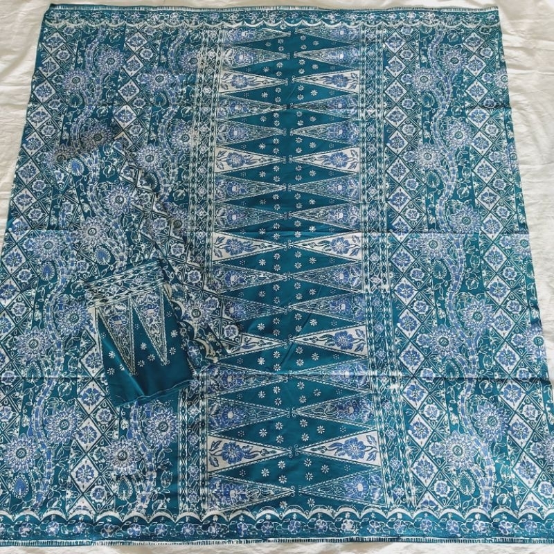 set sarung selendang tosca biru batik jambi kain sarung dan tekuluk