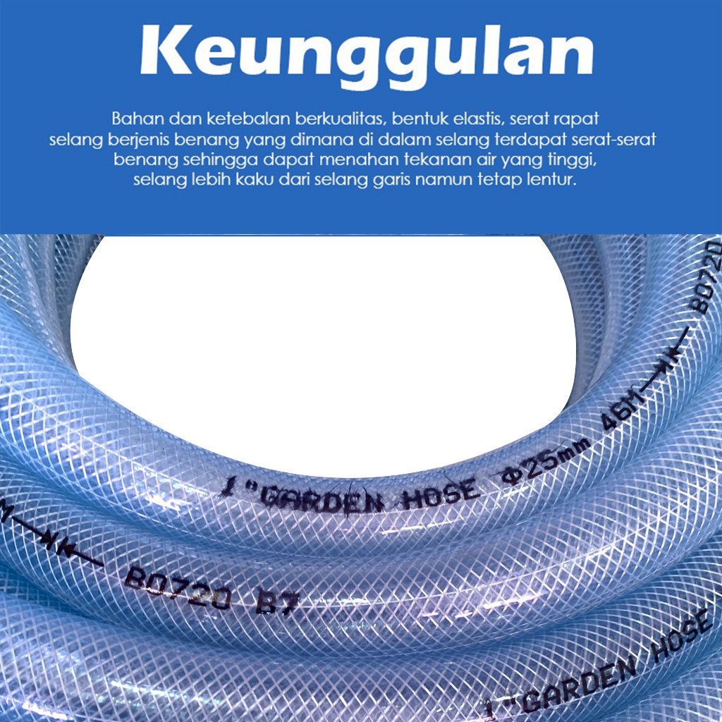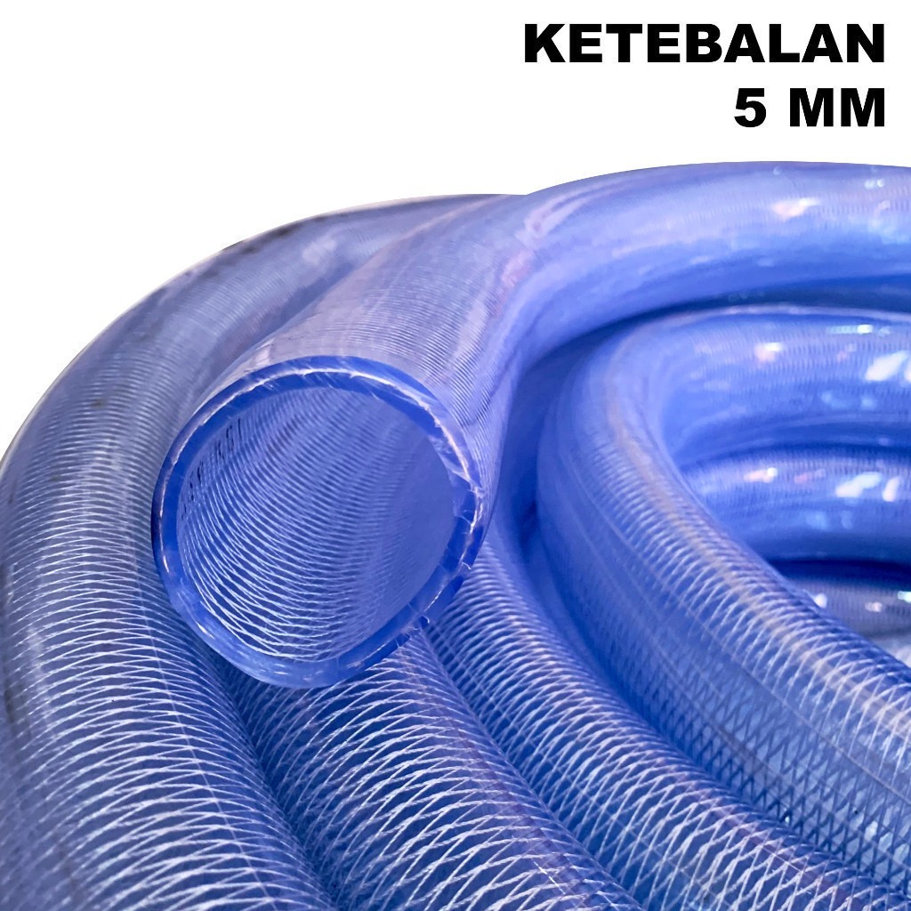 Selang Air 1 1/2 Inch Permeter / Selang Taman Serat Benang Transparant Anyam High Quality 50 Meter / Selang Air Super Tebal 5 mm