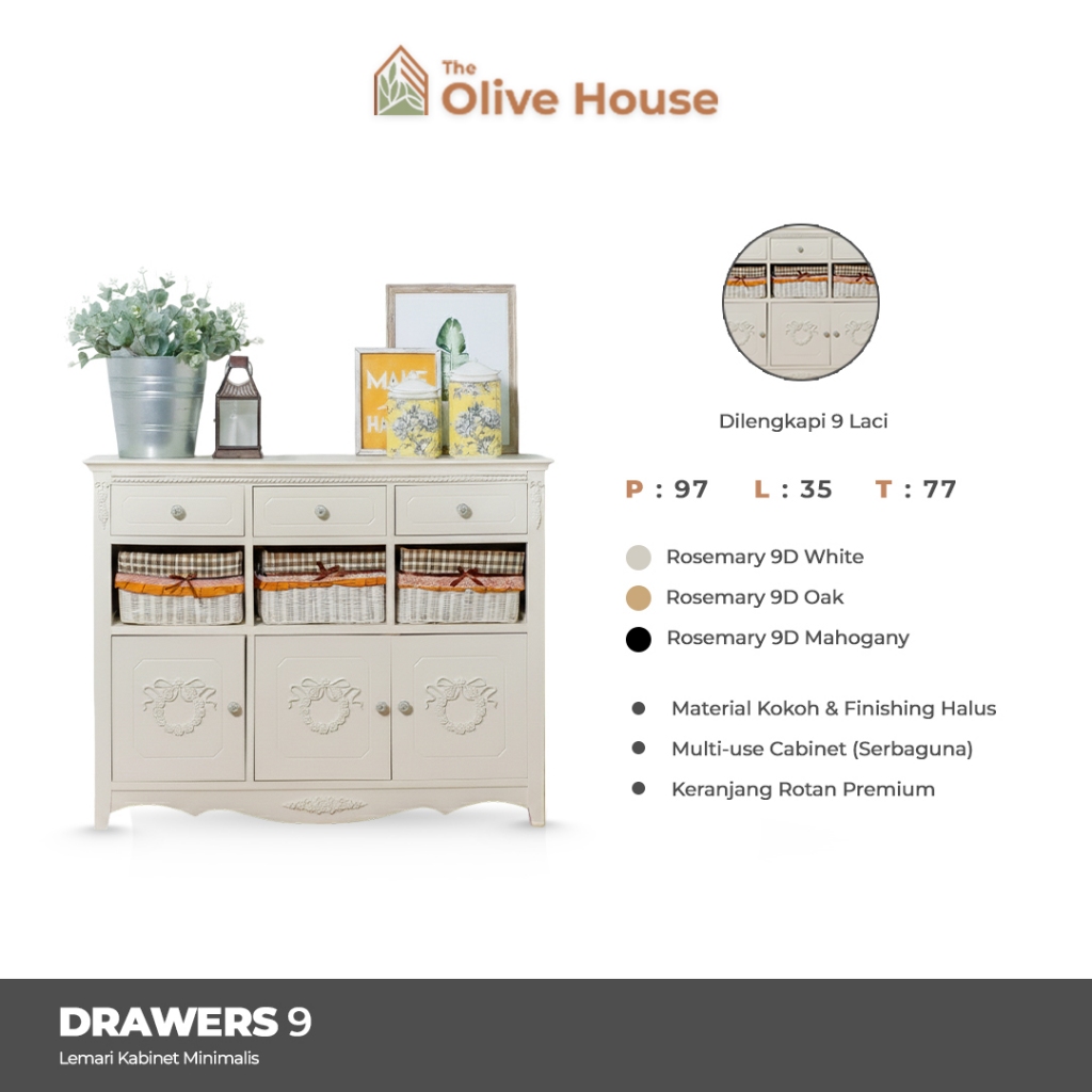 The Olive House- Furnitur Rumah Lemari Kabinet Minimalis 9 Drawers Rotan Kayu Solid Rosemarry