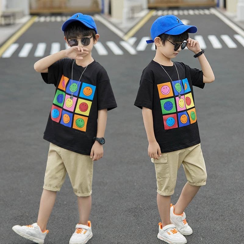 SETELANA ANAK COWOK KEKINIAN IMPORT BLACK/WHITE COLORFULL SMILE BOYSET