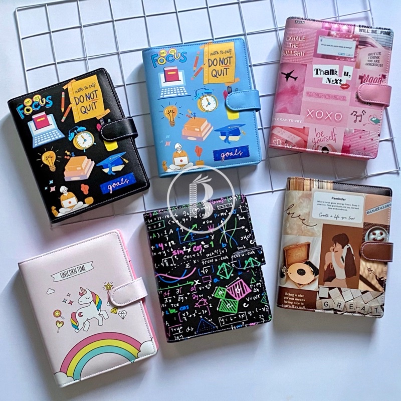 Bindermu READY Binder NEW 04 Printing Motif Aesthetic Quotes Unicorn Kartun KPOP Doraemon Stitch Bahan Kulit Anti Air 20ring A5 26ring B5 6ring A6