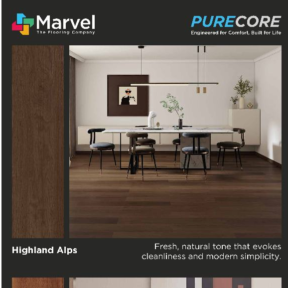 SPC Flooring Marvel Purecore+ Marvel / Lantai SPC 5mm Sistem Click Motif Kayu Anti Rayap