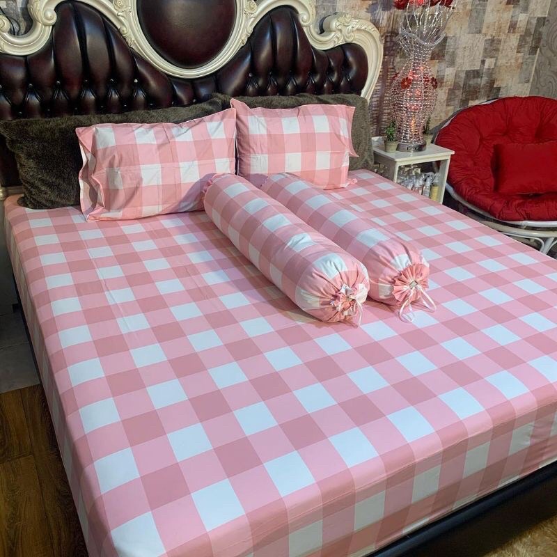 SEPREI KOTAK PINK SOFT EASTHETIC KOREAN // SEPREI BONITA BAHAN KATUN TIDAK LUNTUR