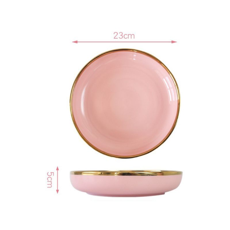 ASHOME Piring Makan Keramik Pink Gold / Piring Pink Keramik List Gold / Mangkuk Keramik Pink Gold Elegan / Piring Keramik Mewah / Piring Keramik Elegan / Piring Keramik Sultan / Piring Makan Aestetik